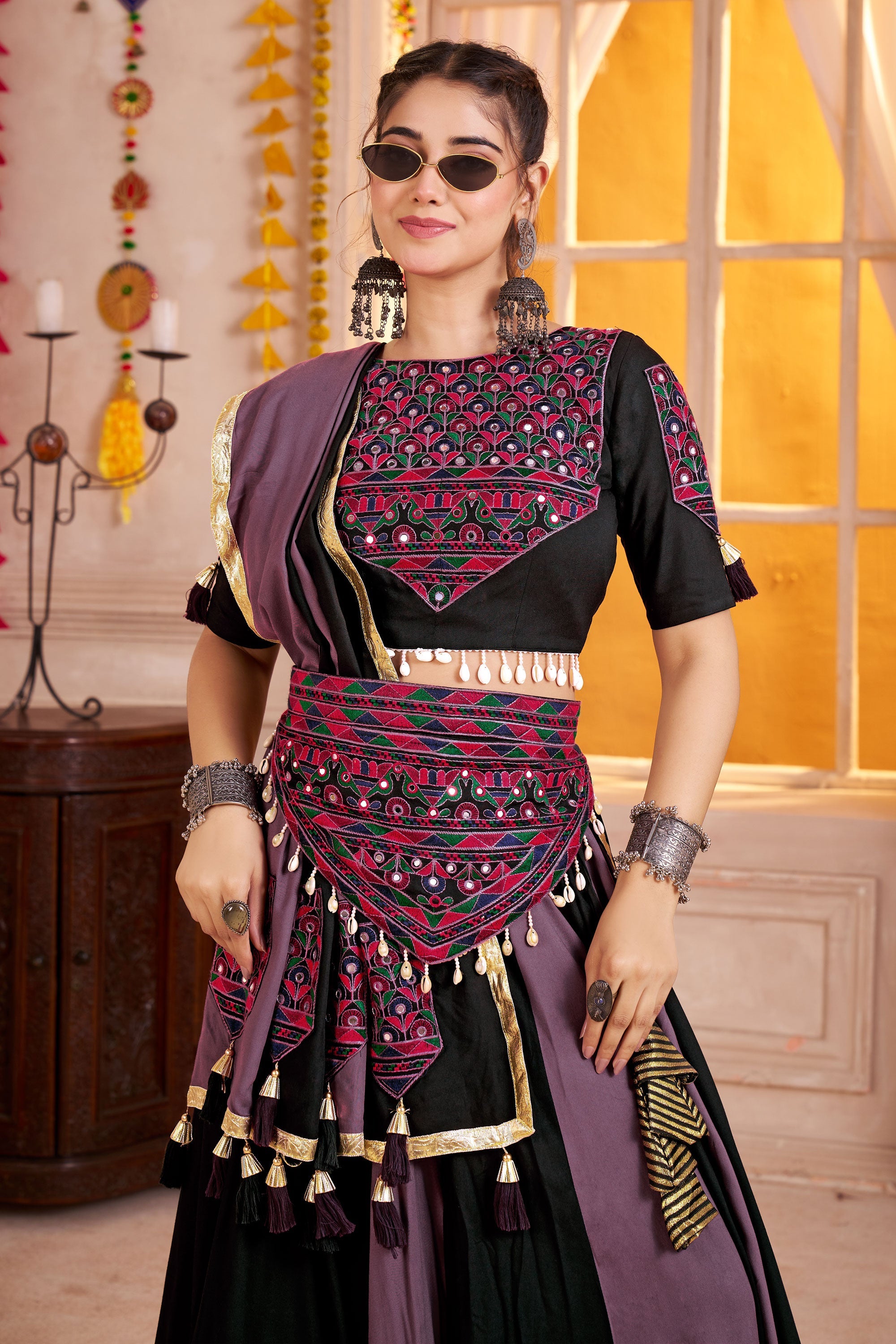 Viscose Cotton Lehenga With Embroidered Mirror Work For Navratri Celebrations