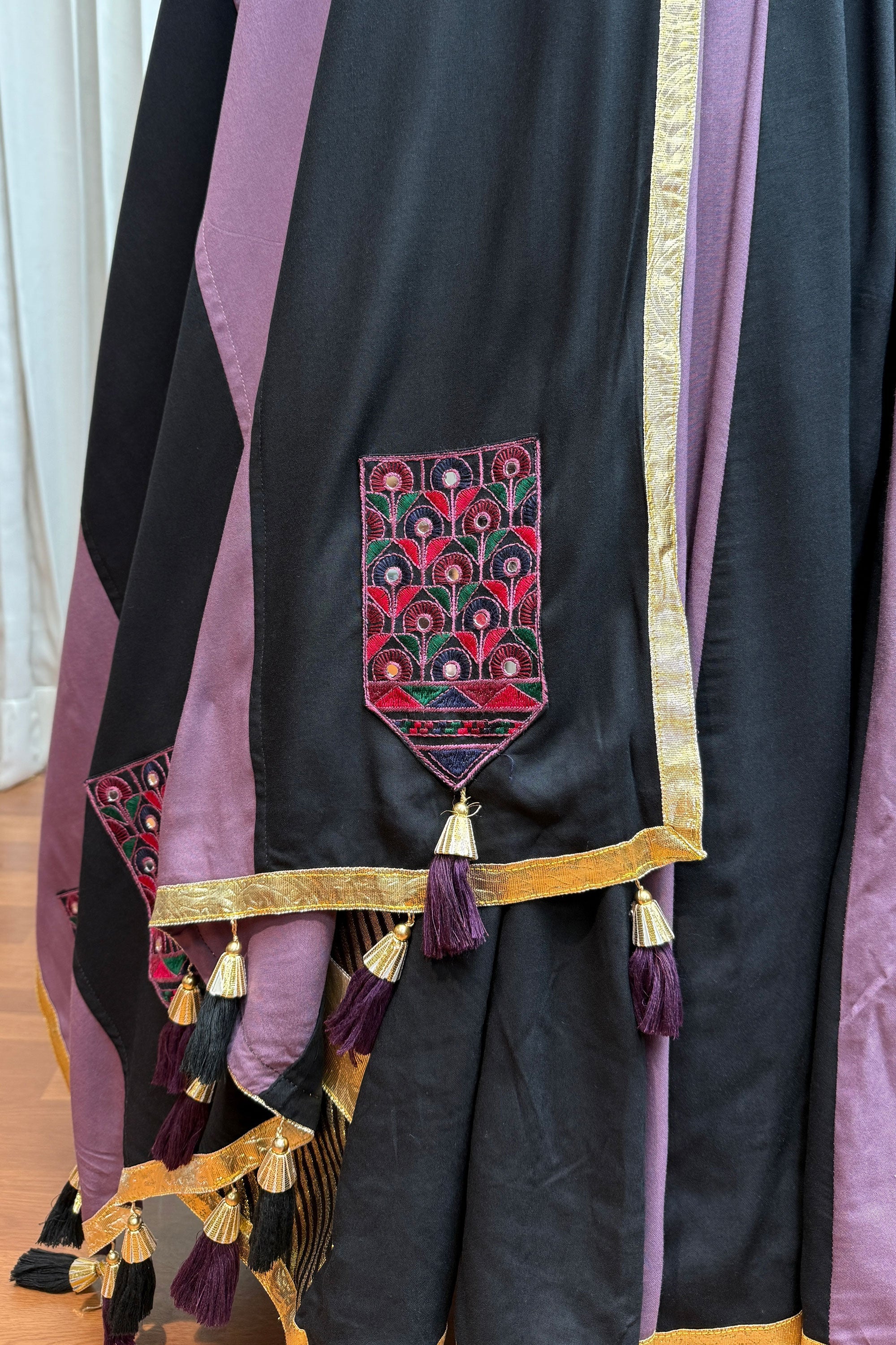Embroidery, patchwork, and threadwork may exhibit slight irregularities—these natural variations enhance the unique charm of each piece. To maintain its beauty, we recommend turning the garment inside out before washing to prevent abrasion.