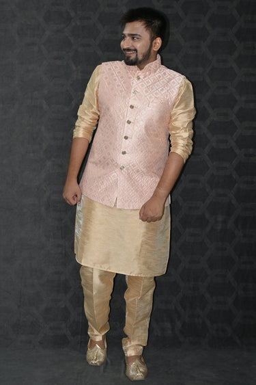 Art Silk Fabric Readymade Men Kurta Pyjama With Pink Color Modi Jacket