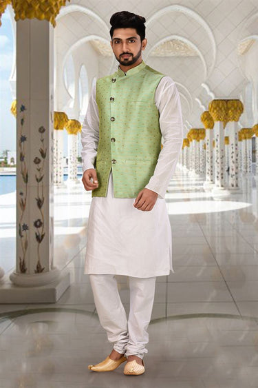 Sea Green Color Fancy Fabric Festive Wear Readymade Men Jacket