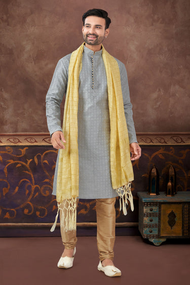 Silk Grey Splendor Kurta Pyjama Set For Men