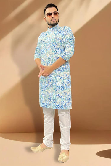 Appealing Blue Color Cotton Fabric Function Wear Kurta Pyjama For Men