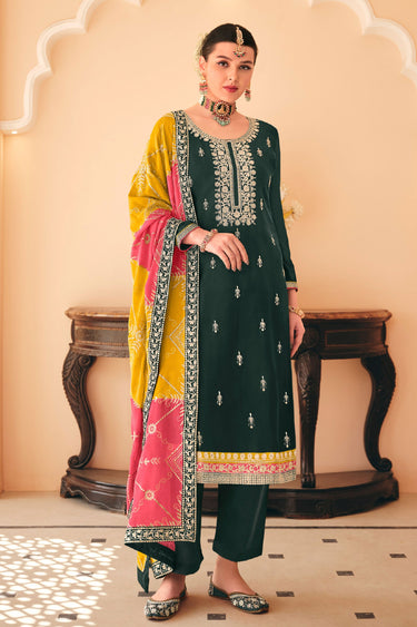 Green Color Glittering Chinon Fabric Embroidered Salwar Suit
