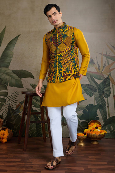 Viscose Silk Yellow Readymade Stunning Kurta For Men With Jacket