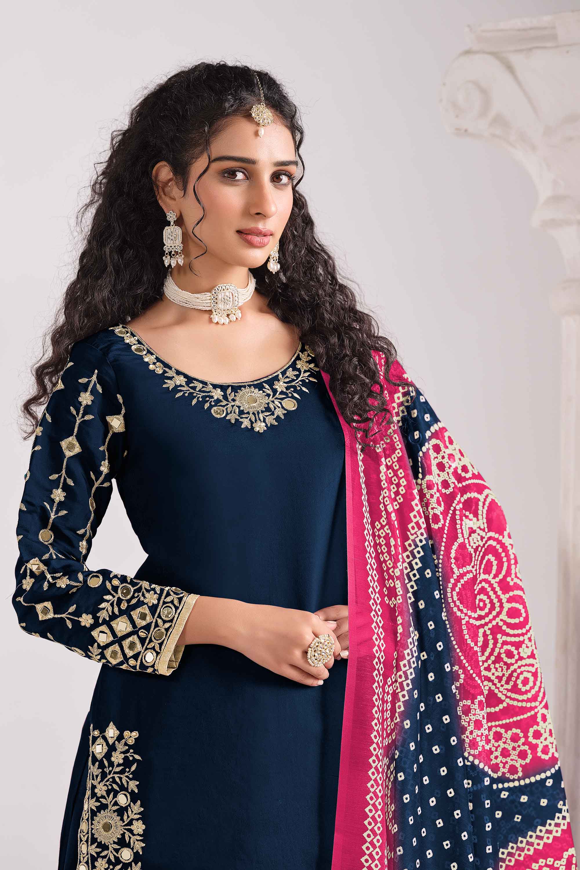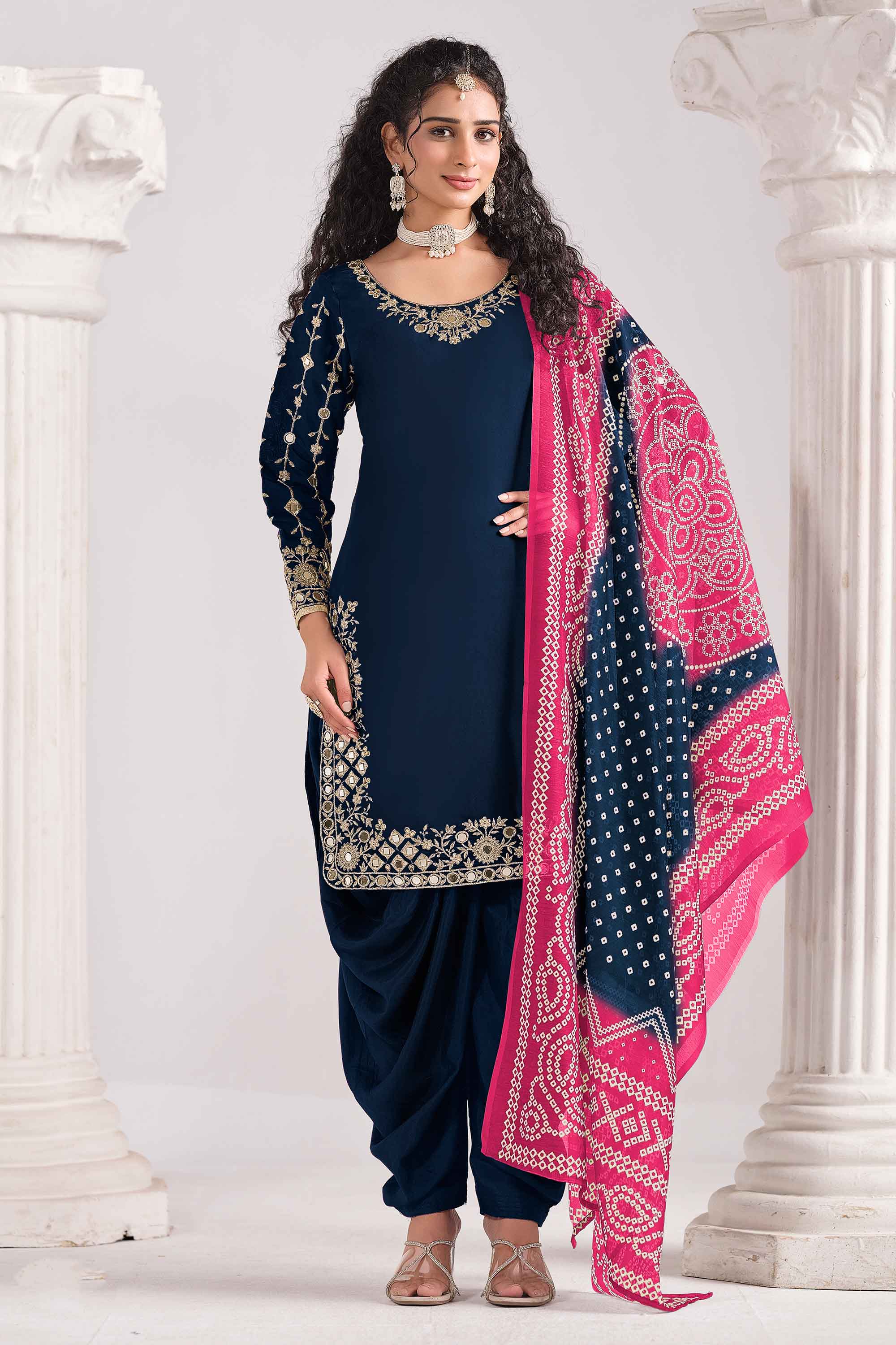 Art Silk Embroidered Work Navy Blue Designer Patiala Salwar Suit