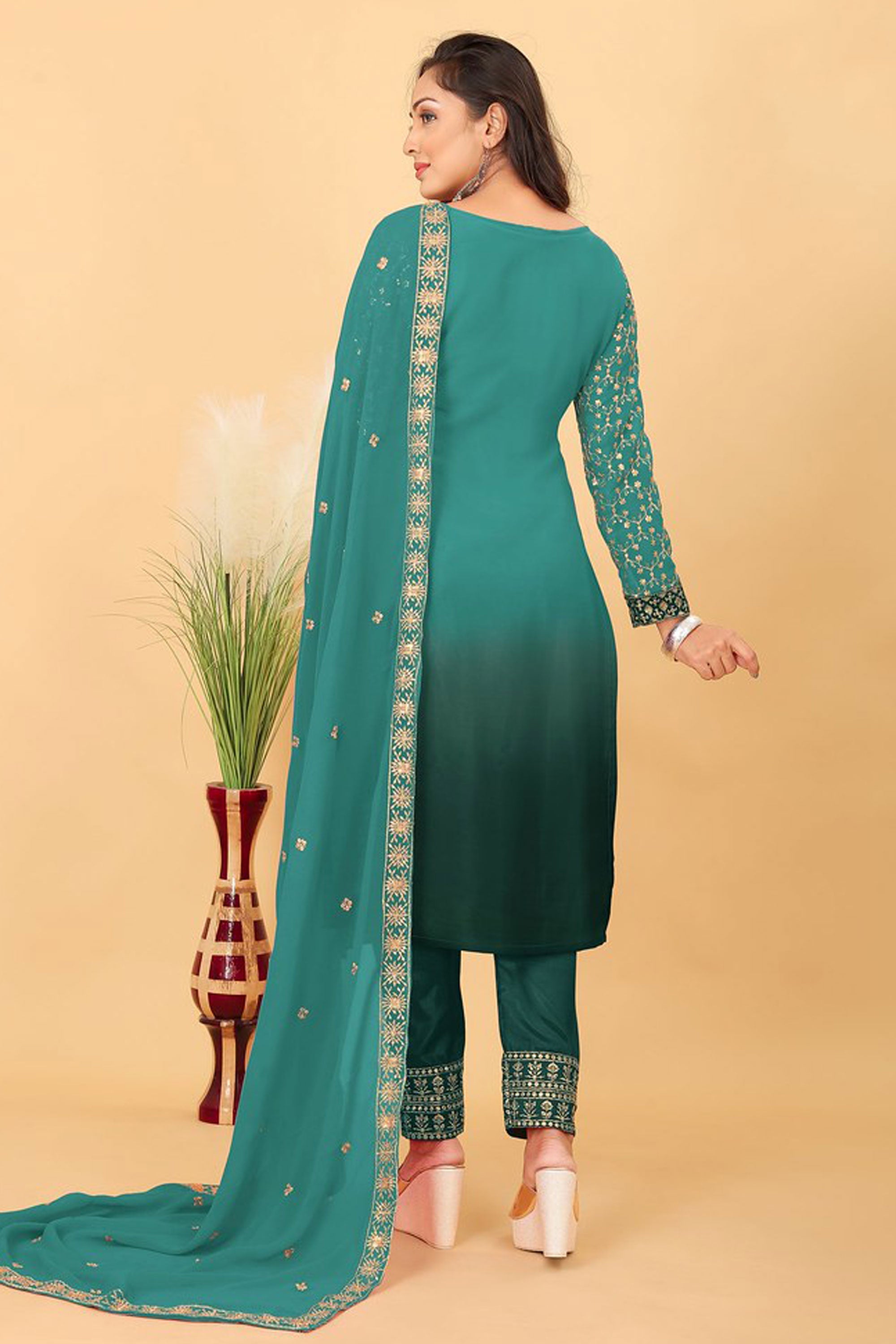 Georgette Teal Embroidered Readymade Straight Cut Salwar Suit