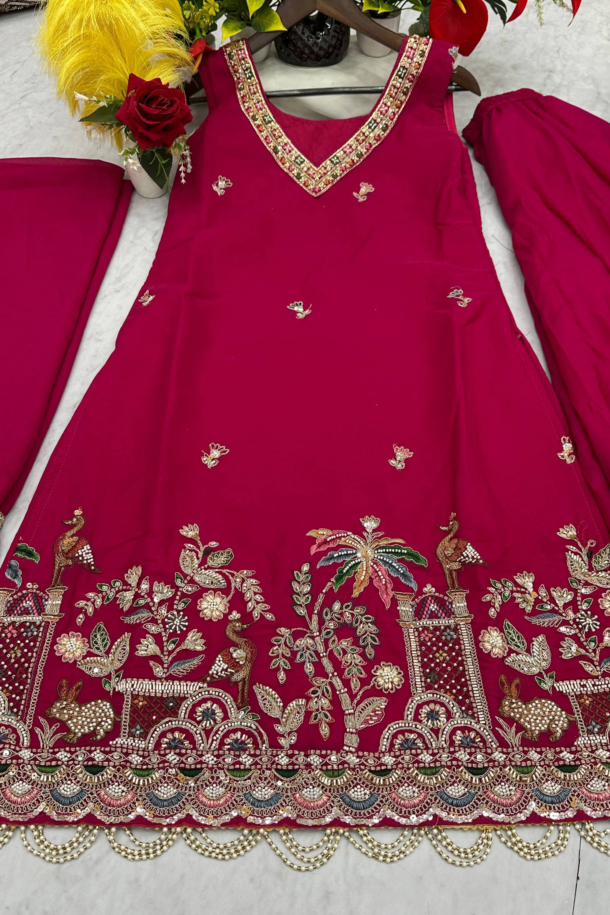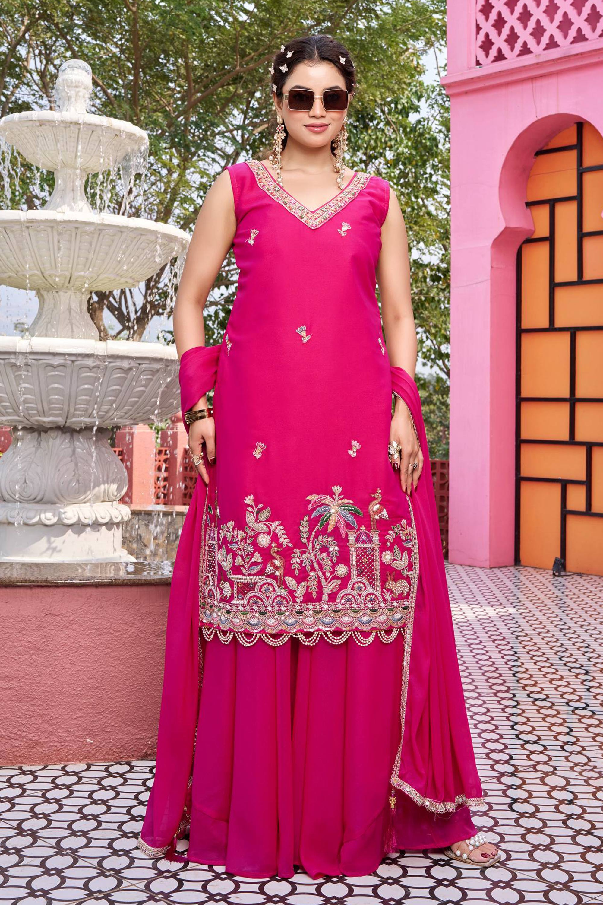 Georgette Embroidered Pink Readymade Palazzo Suit For Sangeet Wear