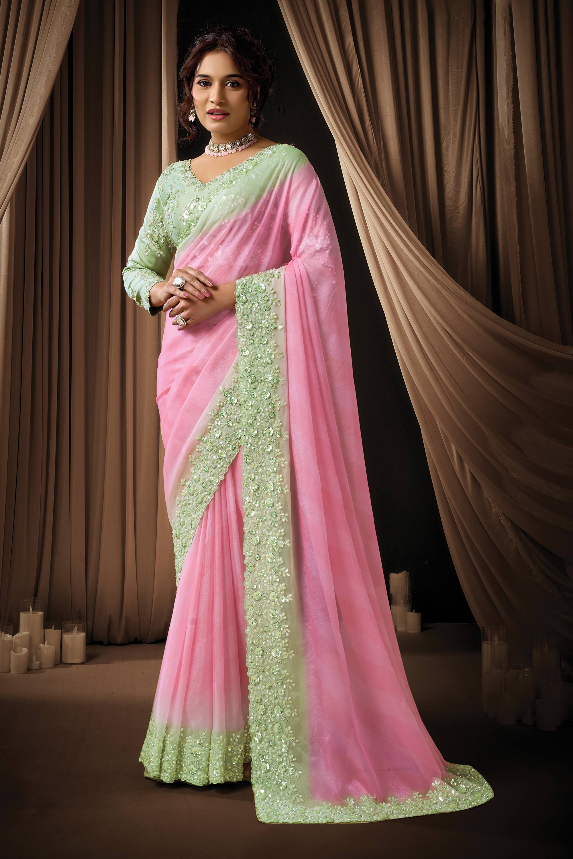 Georgette Fabric Embroidered Pink Function Wear Saree