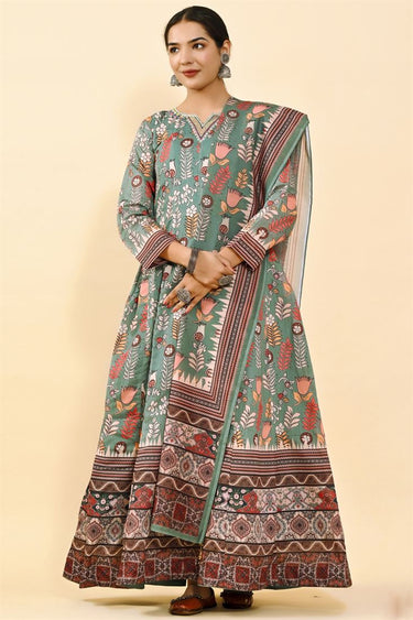 Introducing our "Printed Luminous Long Readymade Gown with Dupatta in Art Silk Fabric," a mesmerizing and radiant ensemble designed to make you shine at any special occasion. This Designer Gown embodies grace and sophistication, perfect for those seeking a blend of contemporary style and traditional artistry.Crafted from high-quality art silk fabric, known for its luxurious texture and elegant drape, this gown exudes elegance and opulence. The gown features a captivating digital Kalamkari print, showcasing intricate patterns and motifs that add a touch of cultural significance.The gown is adorned with handwork and shimmering stone embellishments, creating a luminous and glamorous look. The long length of the gown adds a regal touch, making you feel like a queen as you step into any event.The ensemble comes with a matching dupatta, adding an extra layer of grace and sophistication to complete your look.Experience the beauty and allure of our Printed Luminous Long Readymade Gown with Dupatta in Art Silk Fabric and embrace the radiant charm it brings to any occasion. This exquisite ensemble is a true reflection of style, elegance, and the celebration of your unique beauty.