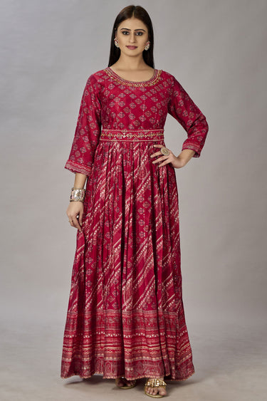 Elevate your wardrobe with this striking Contemporary Art Silk Fabric Readymade Gown. Masterfully designed with exquisite embroidered detailing, this gown combines the elegance of contemporary style with the classic allure of art silk. Whether it's for a cocktail party or a formal gathering, this readymade gown with embroidered work exudes a fashion-forward aura, whilst maintaining the perfect balance of tradition. A worthy addition to your ethnic wear collection, step out in style with this magnificent piece.