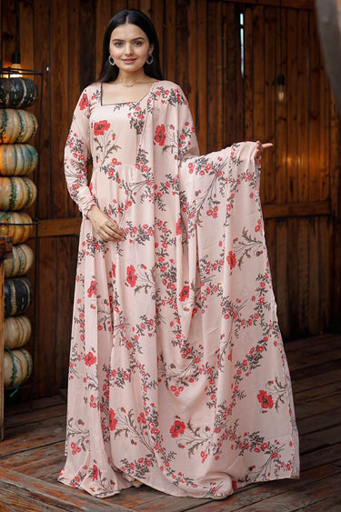 Festive Finesse Georgette Digital Printed Peach Color Gown with Dupatta