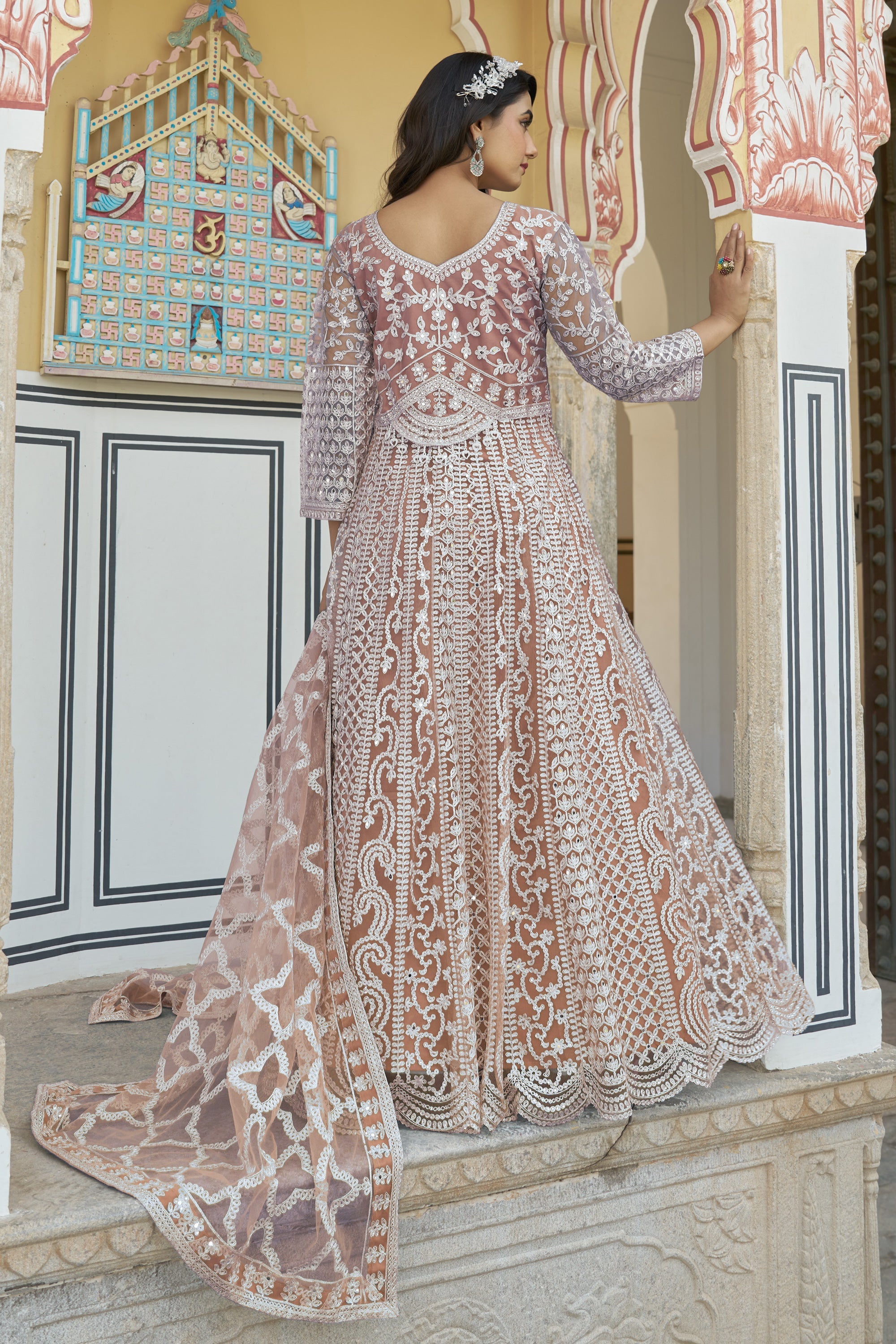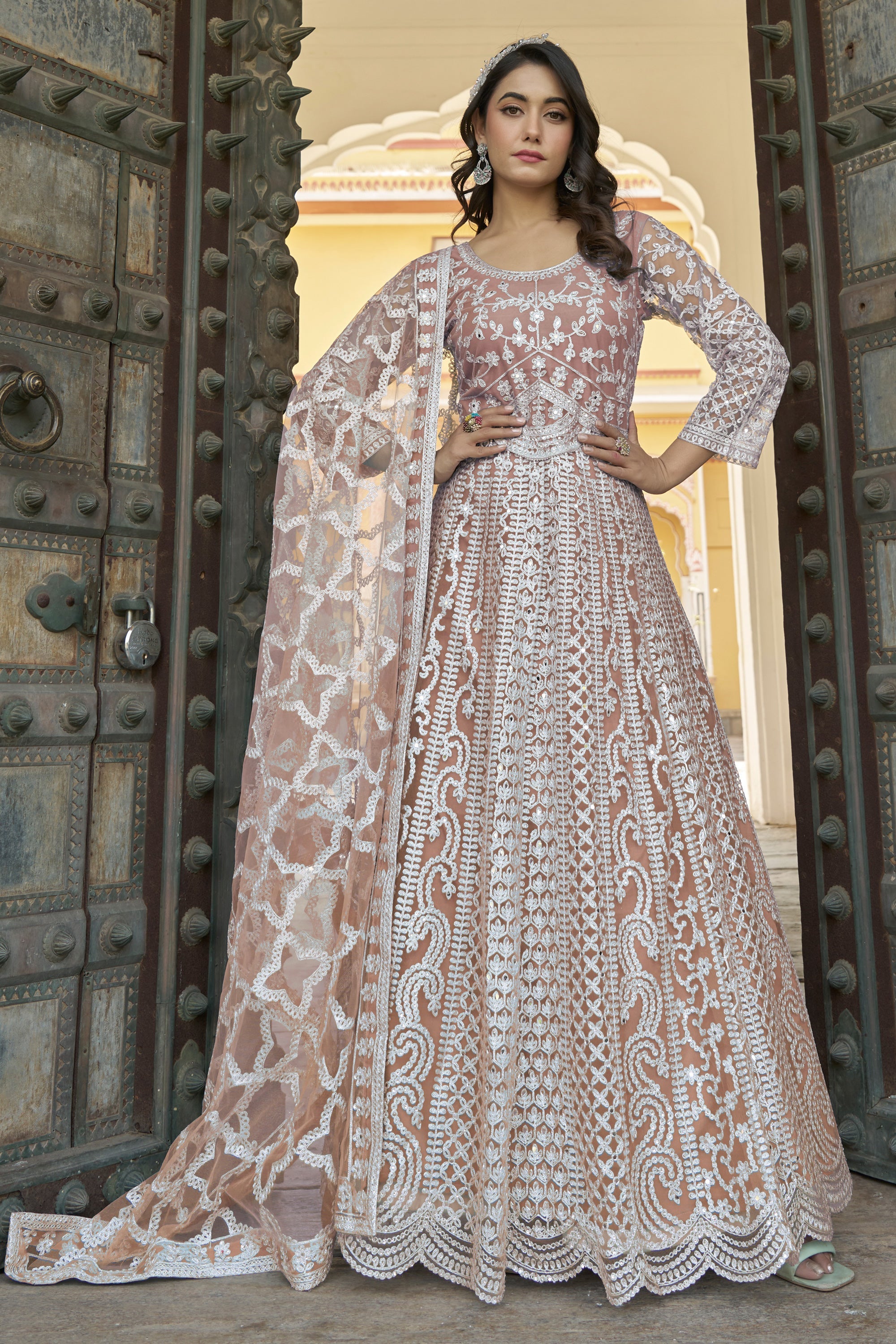 Peach Floor Touch Readymade Anarkali Style Gown With Dupatta