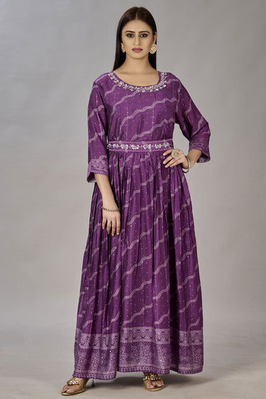 Stylish Embroidered Art silk Fabric Purple Color Readymade Gown For Party