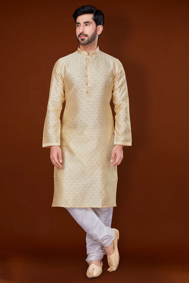 Tempting Jacquard Fabric Cream Color Kurta Pyjama For Men