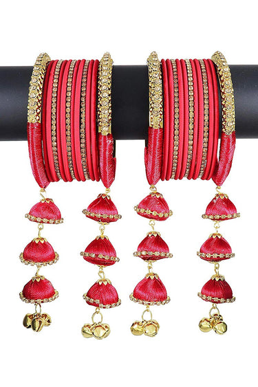 Red Color Handmade Silk Thread Designer Bangles With Latkan For Function