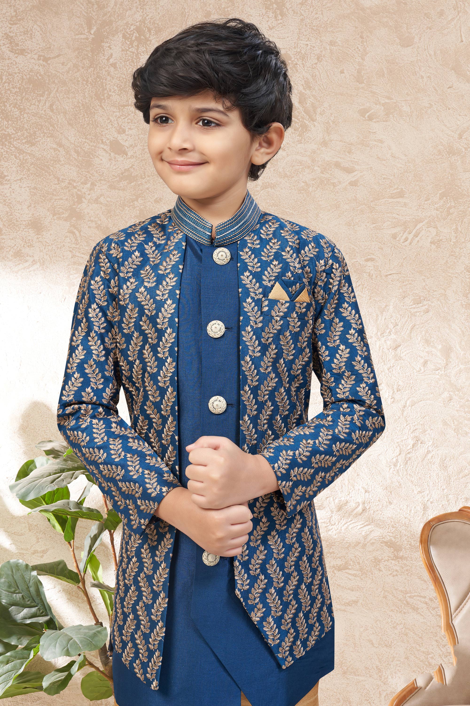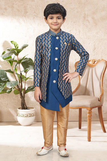 Art Silk Blue Boys Readymade Indo Western For Festive Wear