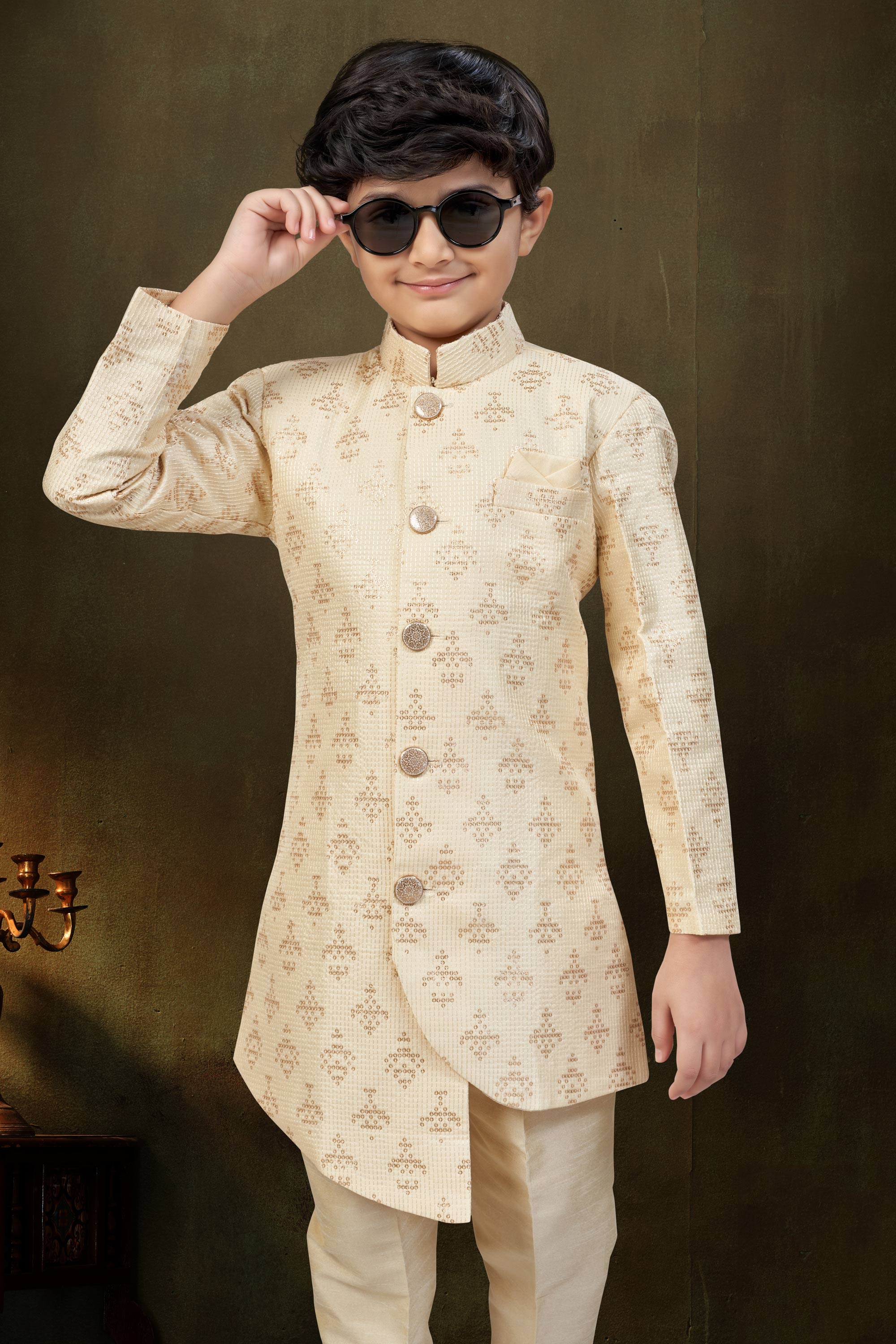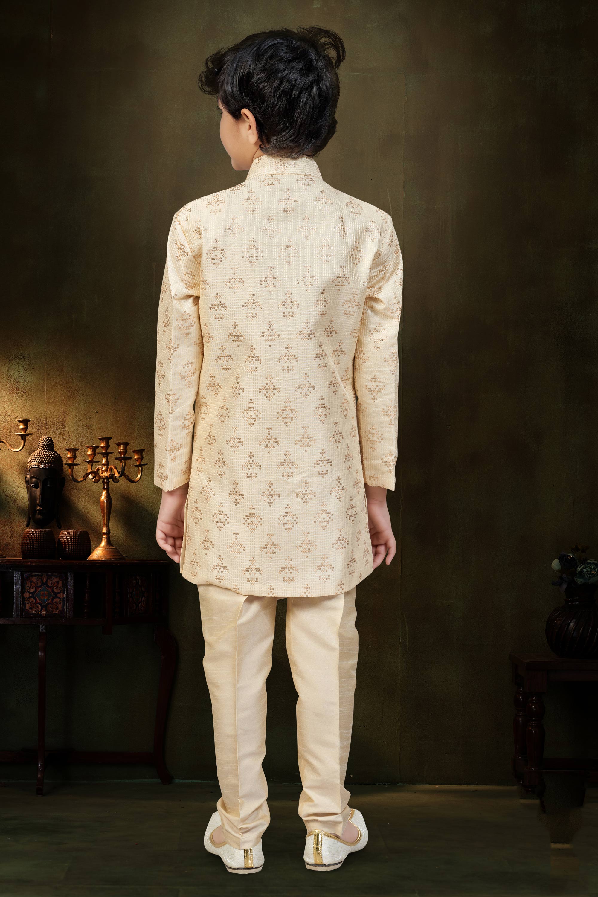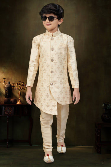 Beige Festive Wear Art Silk Readymade Indo Western For Boys