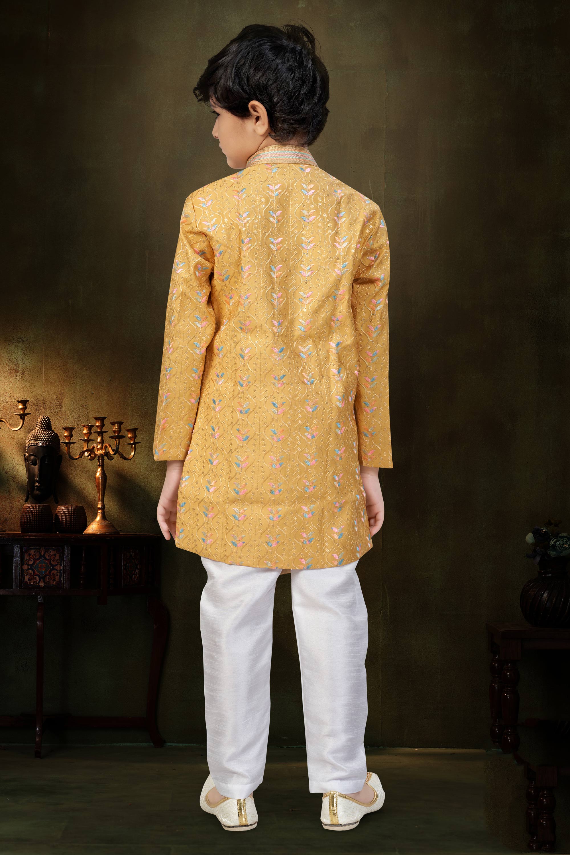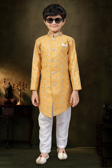 Jacquard Fabric Festive Wear Mustard Readymade Indo Western For Boys