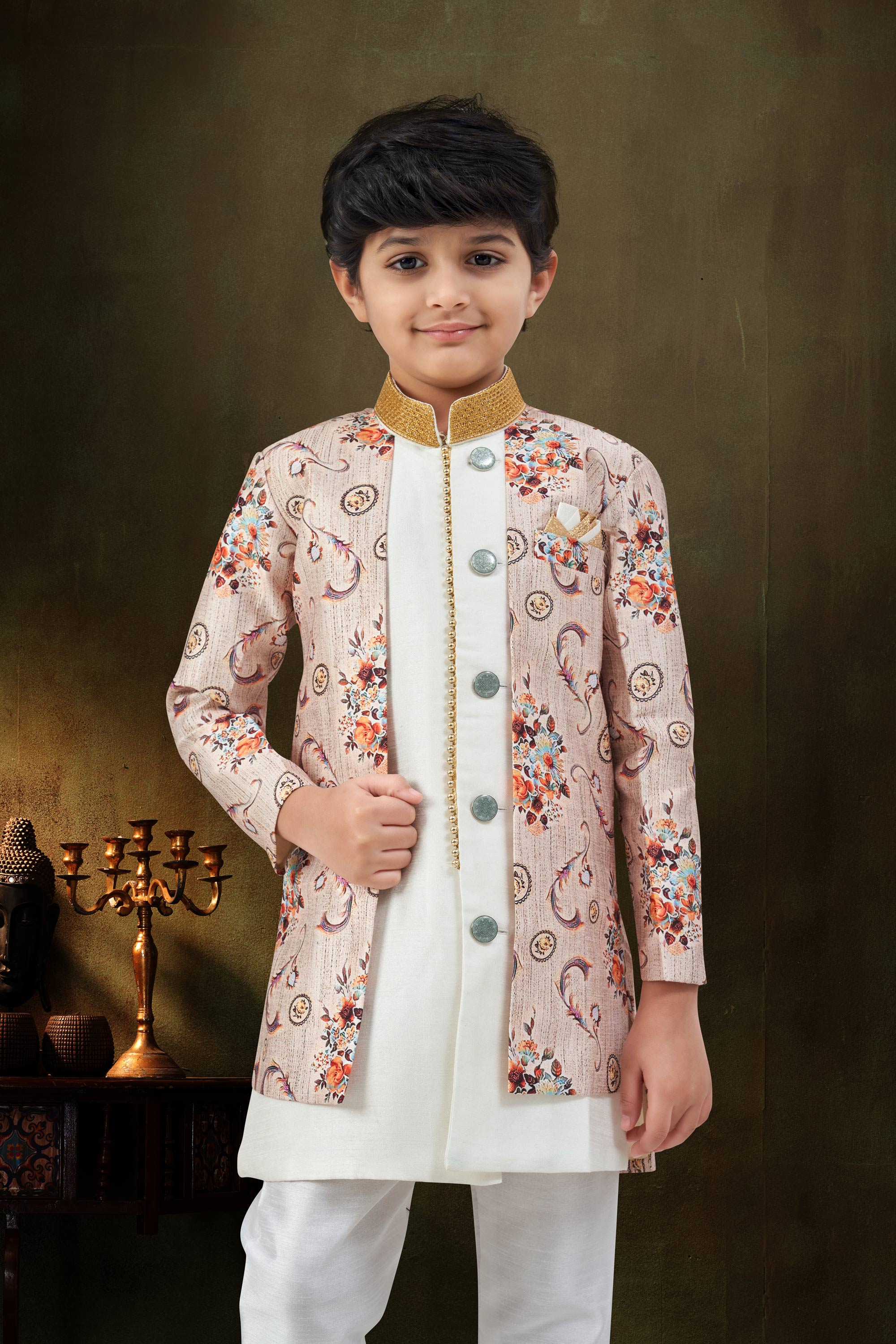 Jacquard Fabric Off White Boys Readymade Indo Western For Festive Wear