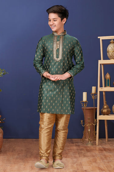 Jacquard Silk Fabric Green Color Traditional Wear Boys Fancy Readymade Kurta Pyjama
