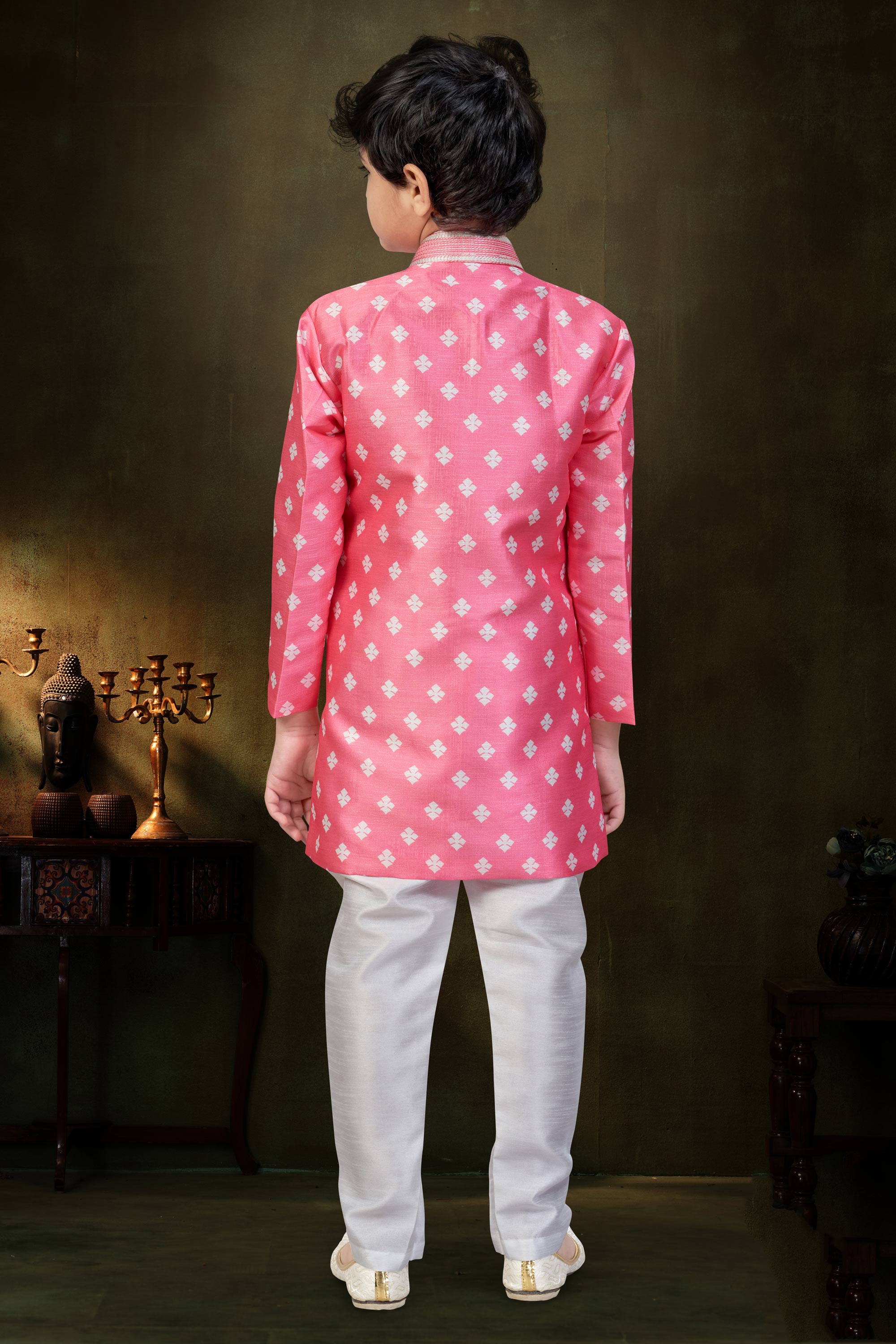 Let your little one steal the spotlight in this elegant Kids Boys IndoWestern Readymade Outfit. Designed with premium Art Silk fabric, the IndoWestern top delivers a luxurious appeal, paired with a soft and comfortable Silk Dupion pyjama. This outfit is thoughtfully created for festive wear and special moments. Due to digital photography, slight color variations may occur.