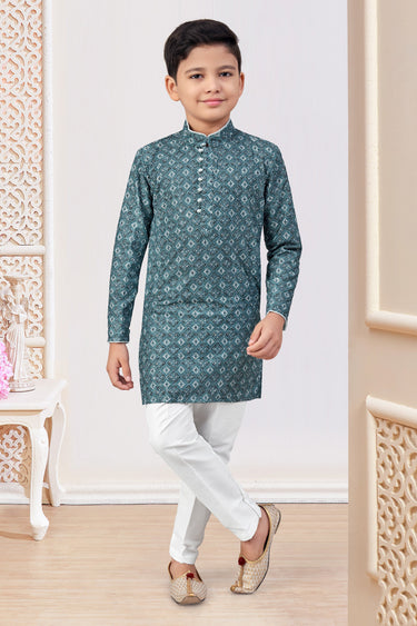 Rayon Fabric Teal Color Traditional Wear Boys Readymade Kurta Pyjama