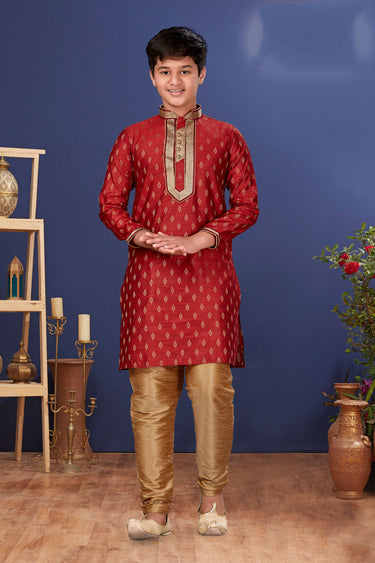 Sangeet Function Wear Maroon Jacquard Silk Stylish Readymade Kurta Pyjama For Boys
