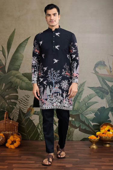 Festive Wear Black Viscose Silk Readymade Lovely Men Kurta
