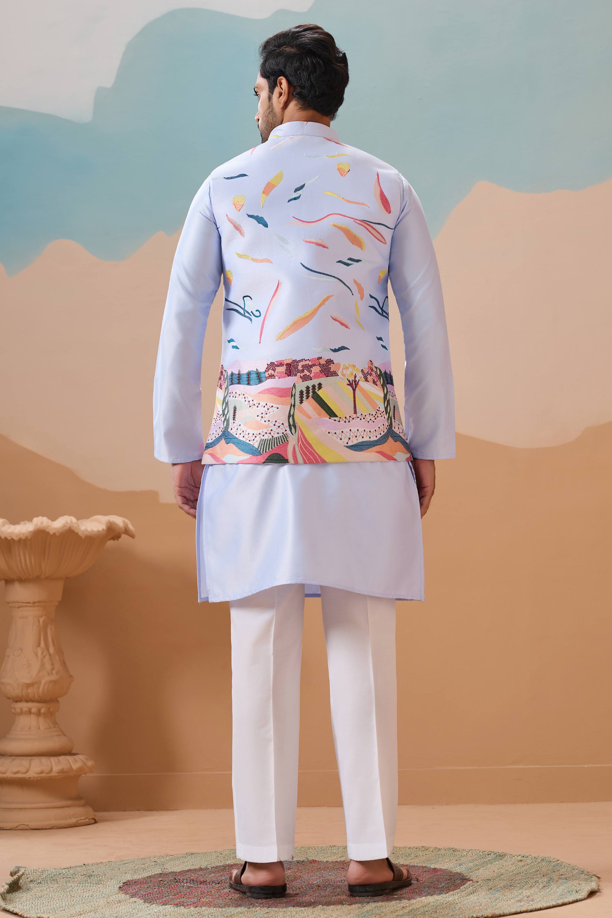 Gorgeous Function Wear Readymade Kurta Pyjama for Men with Jacket – Elevate your wardrobe with this stunning traditional attire, perfect for weddings, parties, and celebrations. The kurta and pyjama are designed for both comfort and style, offering a flawless fit that highlights craftsmanship. The matching jacket adds sophistication, giving you a polished look for any special occasion. Made with premium-quality fabric, this ensemble ensures all-day comfort and long-lasting durability. Pair it with your favorite footwear for an effortlessly classy look that stands out in the crowd. Choose from a variety of colors to match your personal style and event theme.