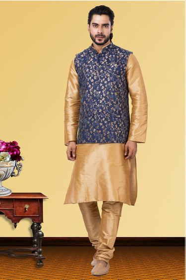 Dhupion Raw Silk Cream Festive Wear Readymade Lovely Kurta Pyjama For Men With Jacket