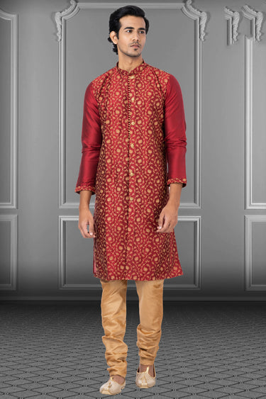 Maroon Dhupion Fabric Function Wear Fancy Readymade Kurta Pyjama For Men