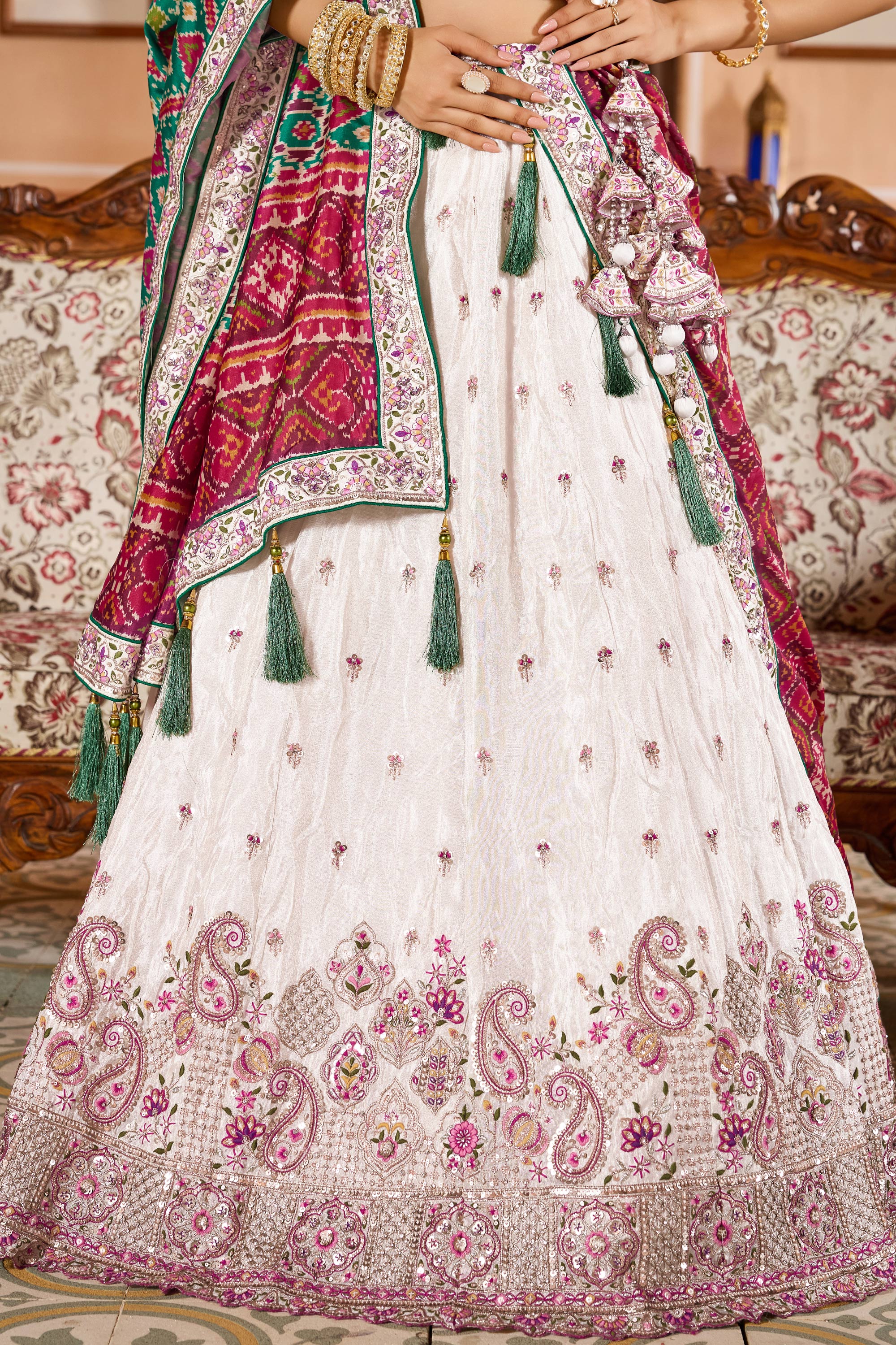 Elevate your traditional look with the Reach Color Sequins Embroidery Lehenga. The semi-stitched lehenga comes adorned with exquisite sequin detailing, ideal for celebrations like weddings and festivals. Its versatile design includes an unstitched blouse, offering the freedom to craft a style that’s uniquely yours. The accompanying dupatta completes the ensemble with added grace and sophistication. Made from quality materials, this set balances elegance and comfort, making it a must-have addition to your occasion wear collection. Impress at your next event with this beautifully designed attire.