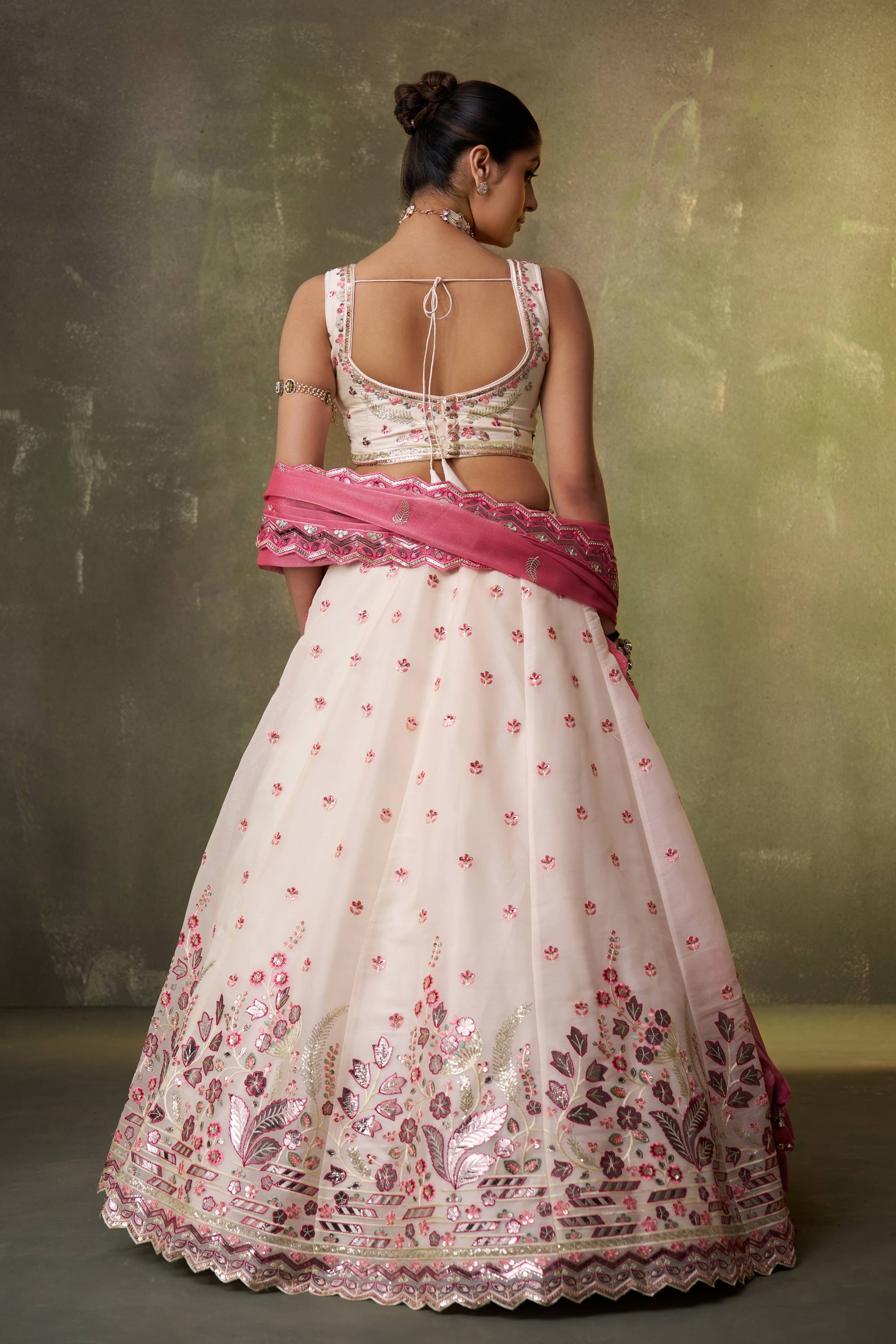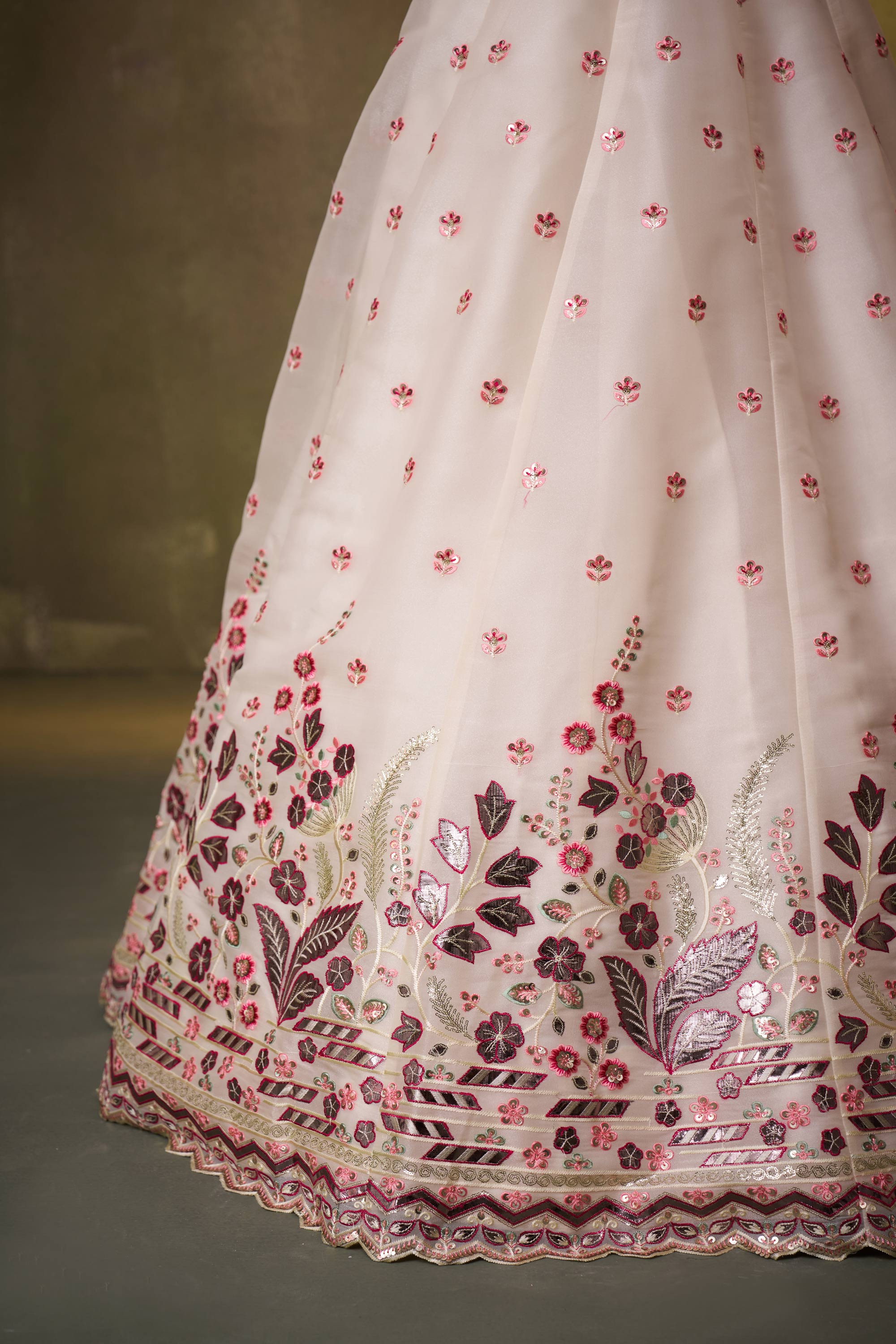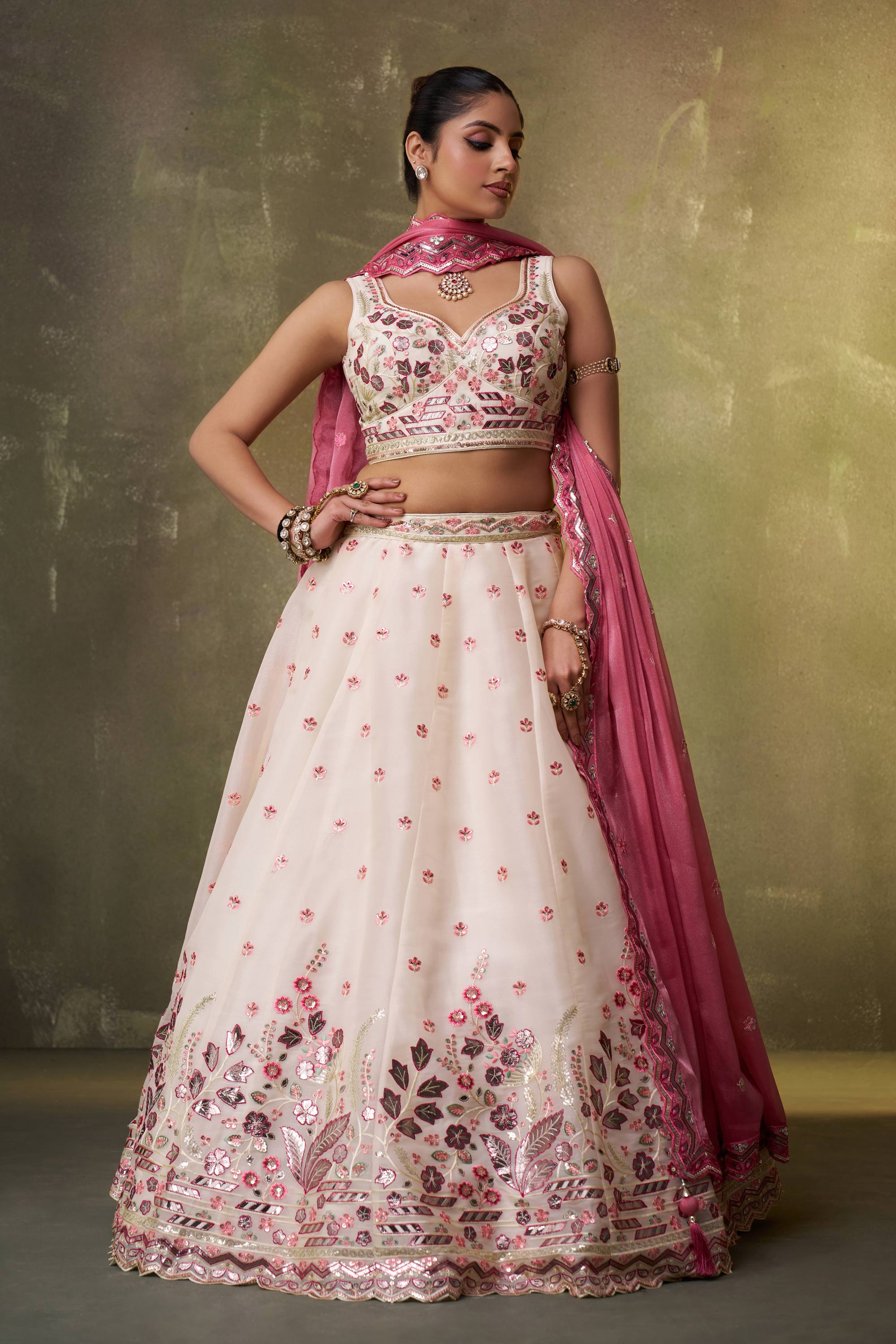 Cream Wedding Wear Organza Fabric Lehenga Choli
