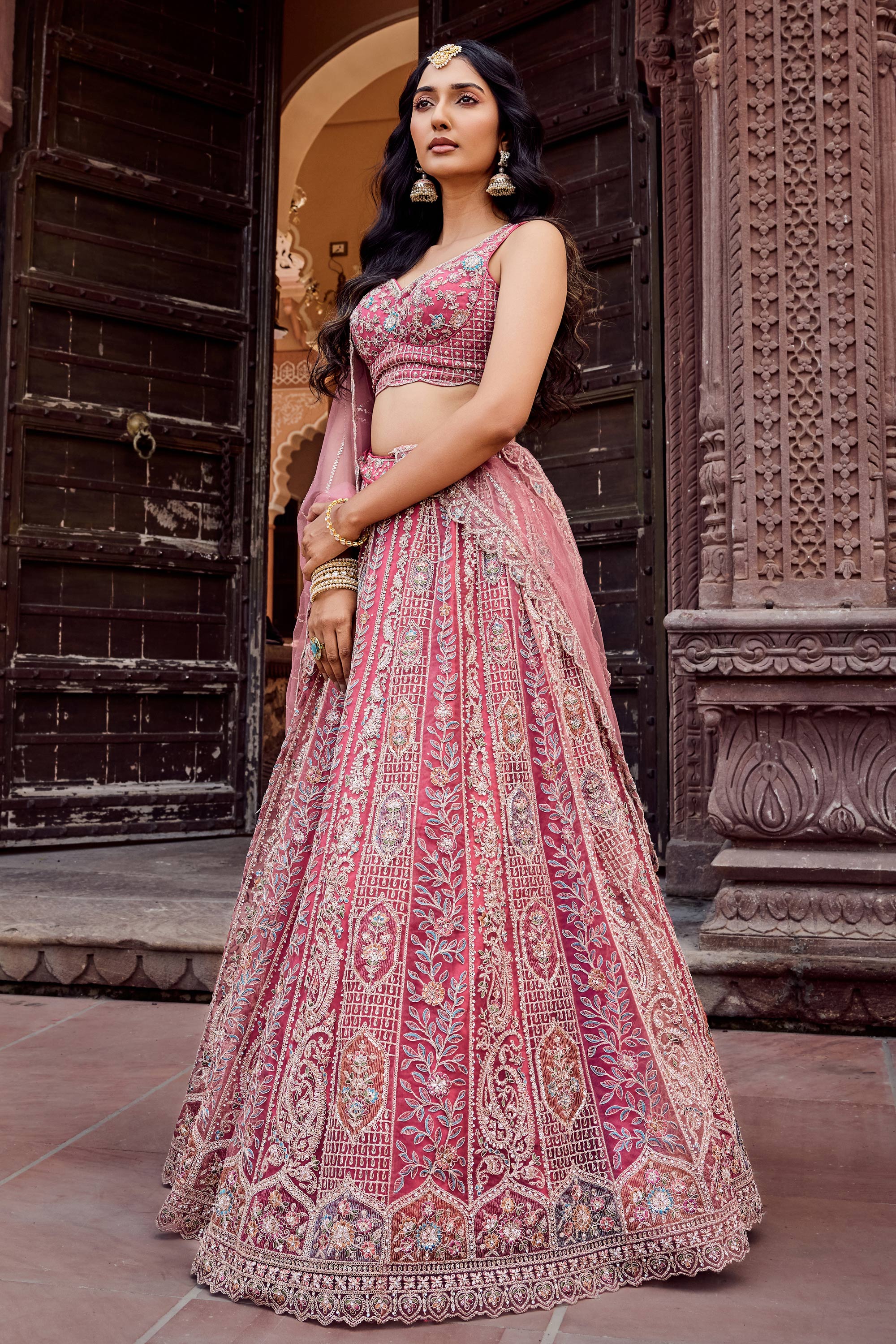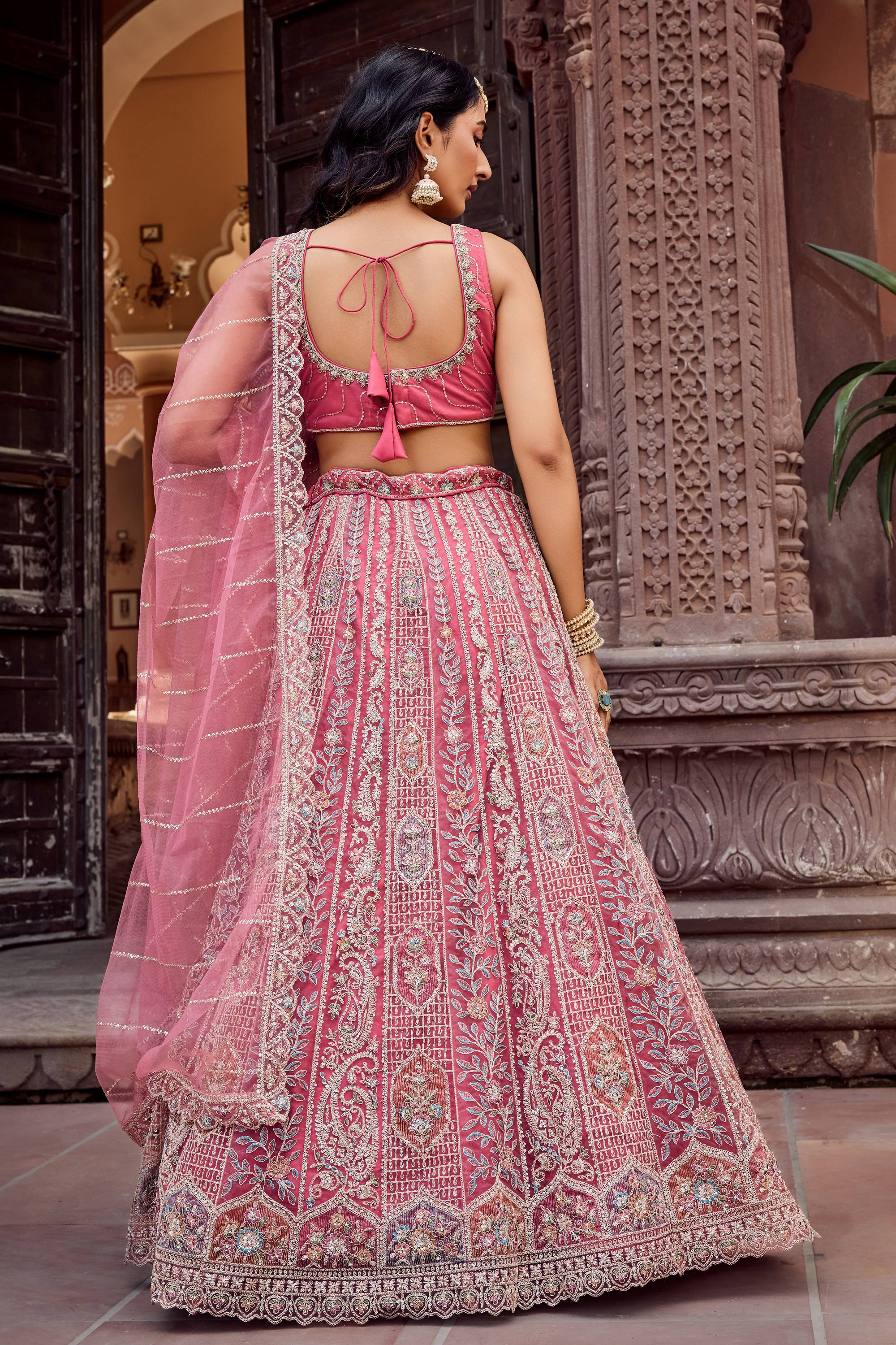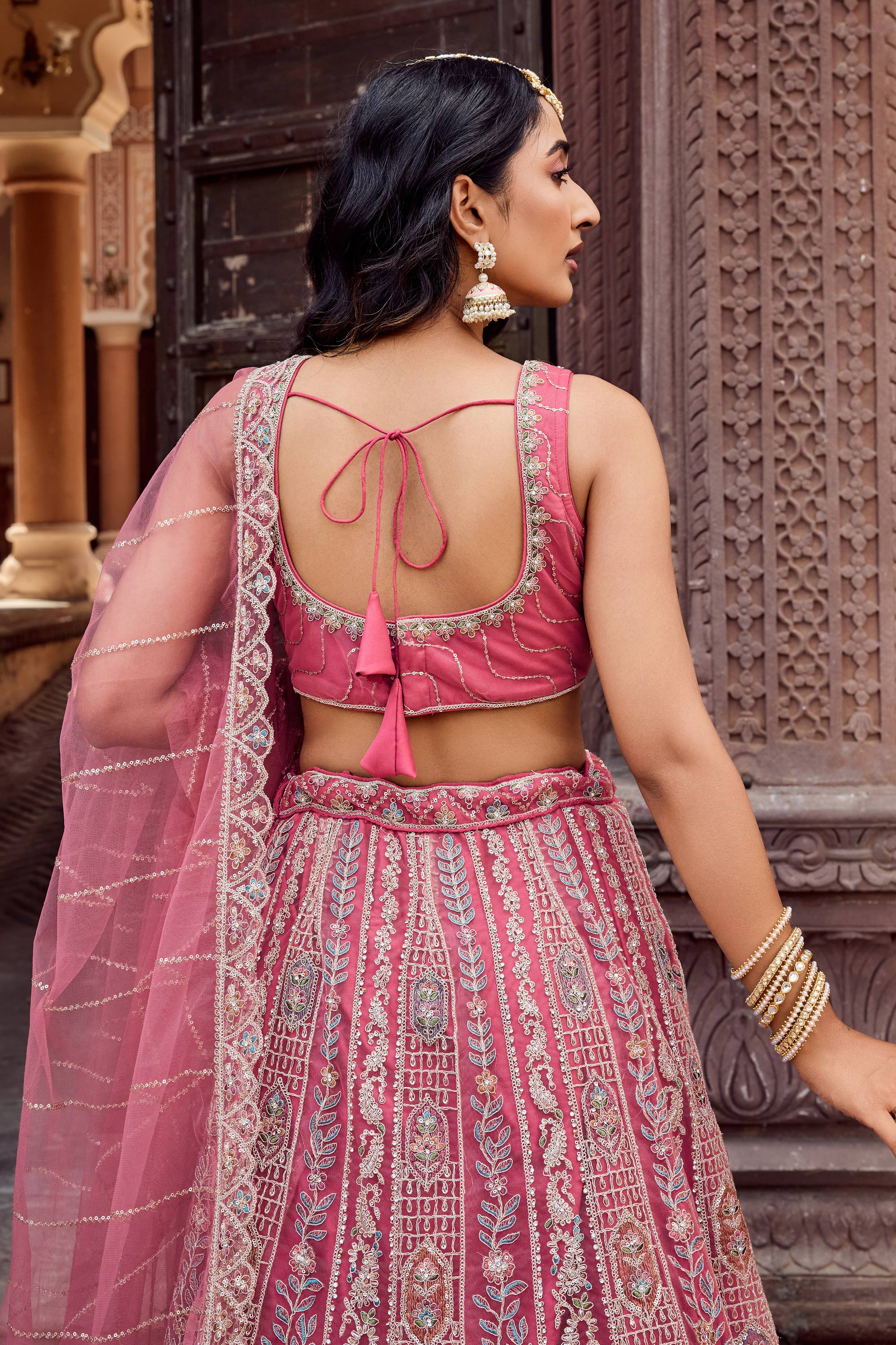 Embroidered Net Fabric Pink Lehenga Choli For Wedding Wear