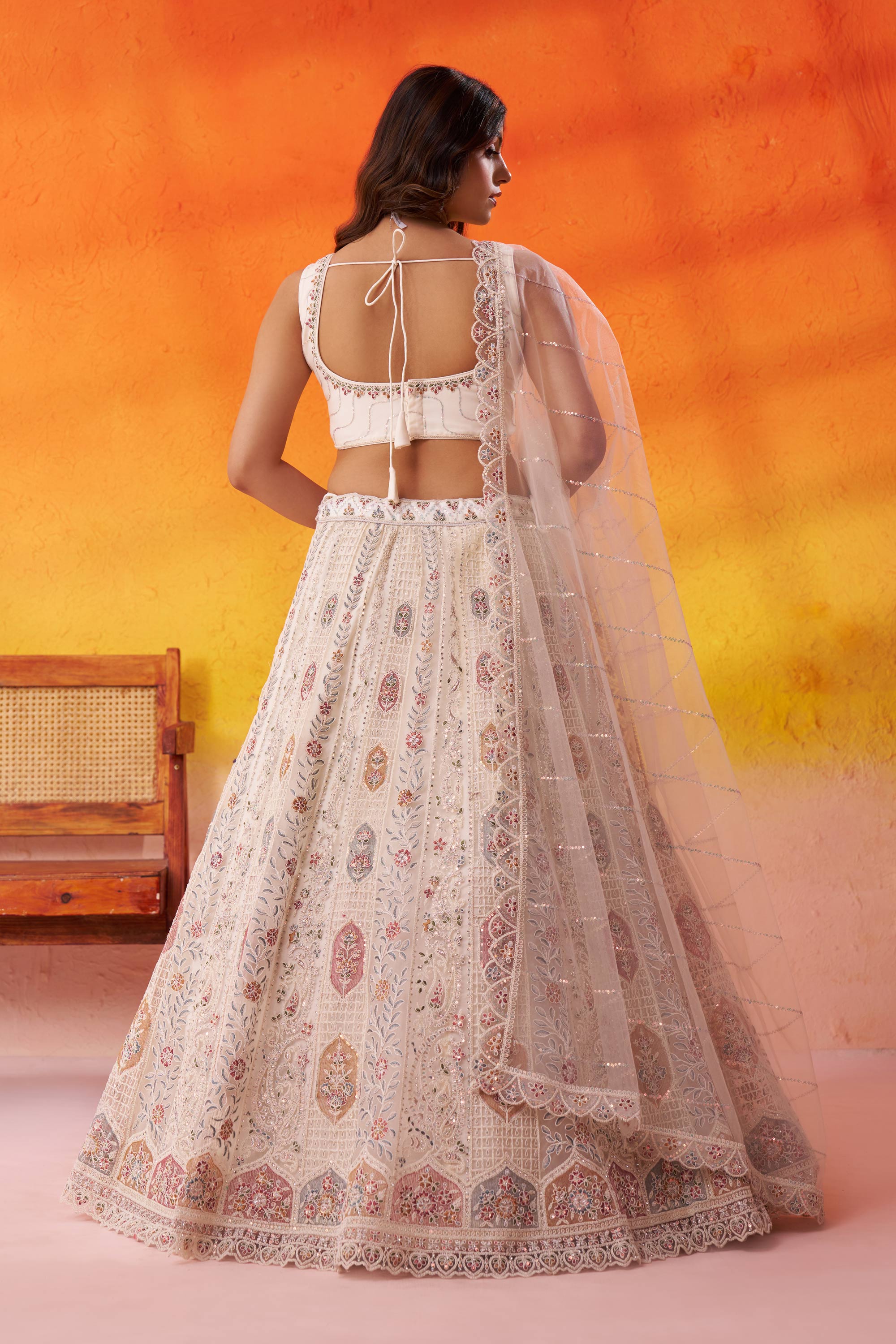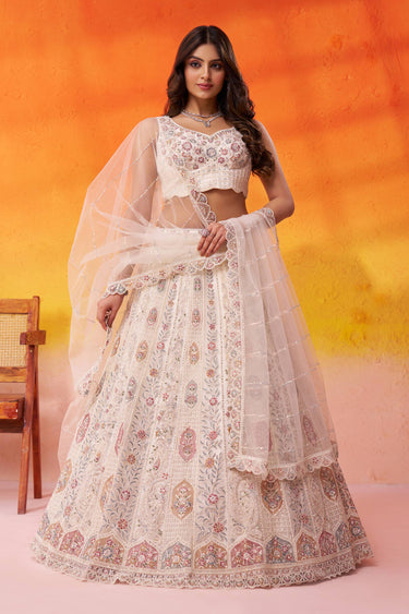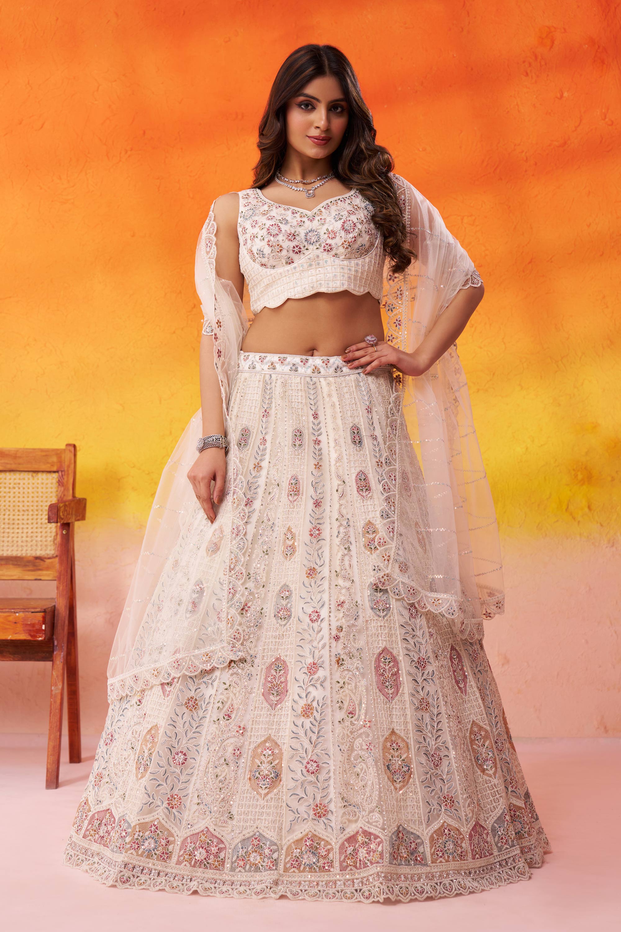 Embroidered Off White Wedding Wear Lehenga Choli With Dupatta