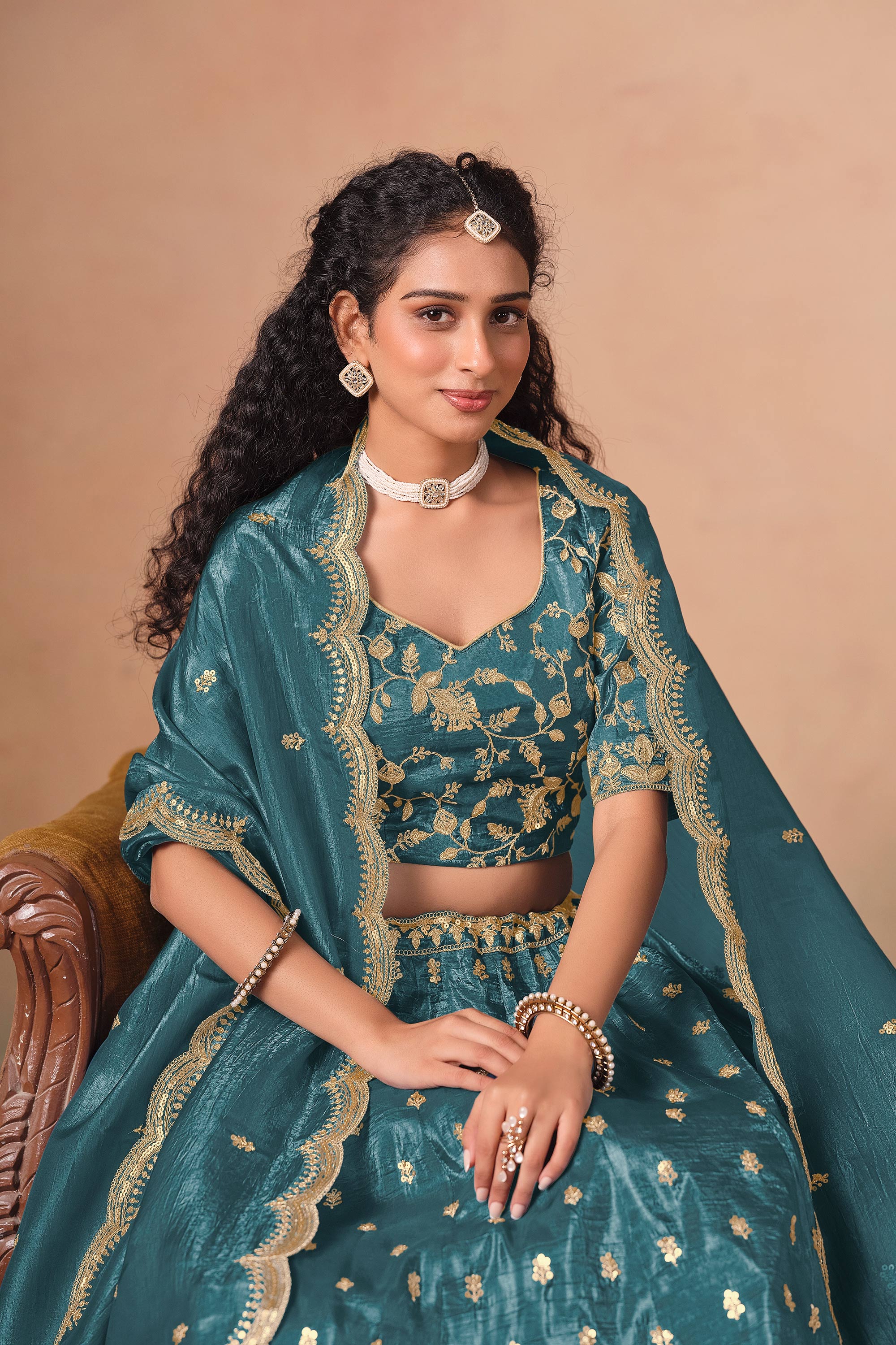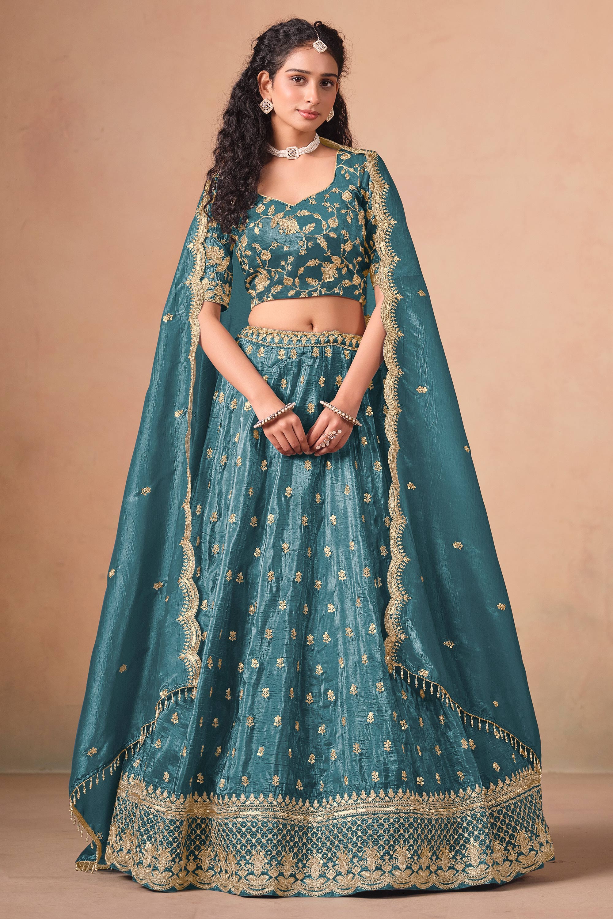 Embroidered Work Blue Crush Organza Fabric Festive Wear Lehenga Choli