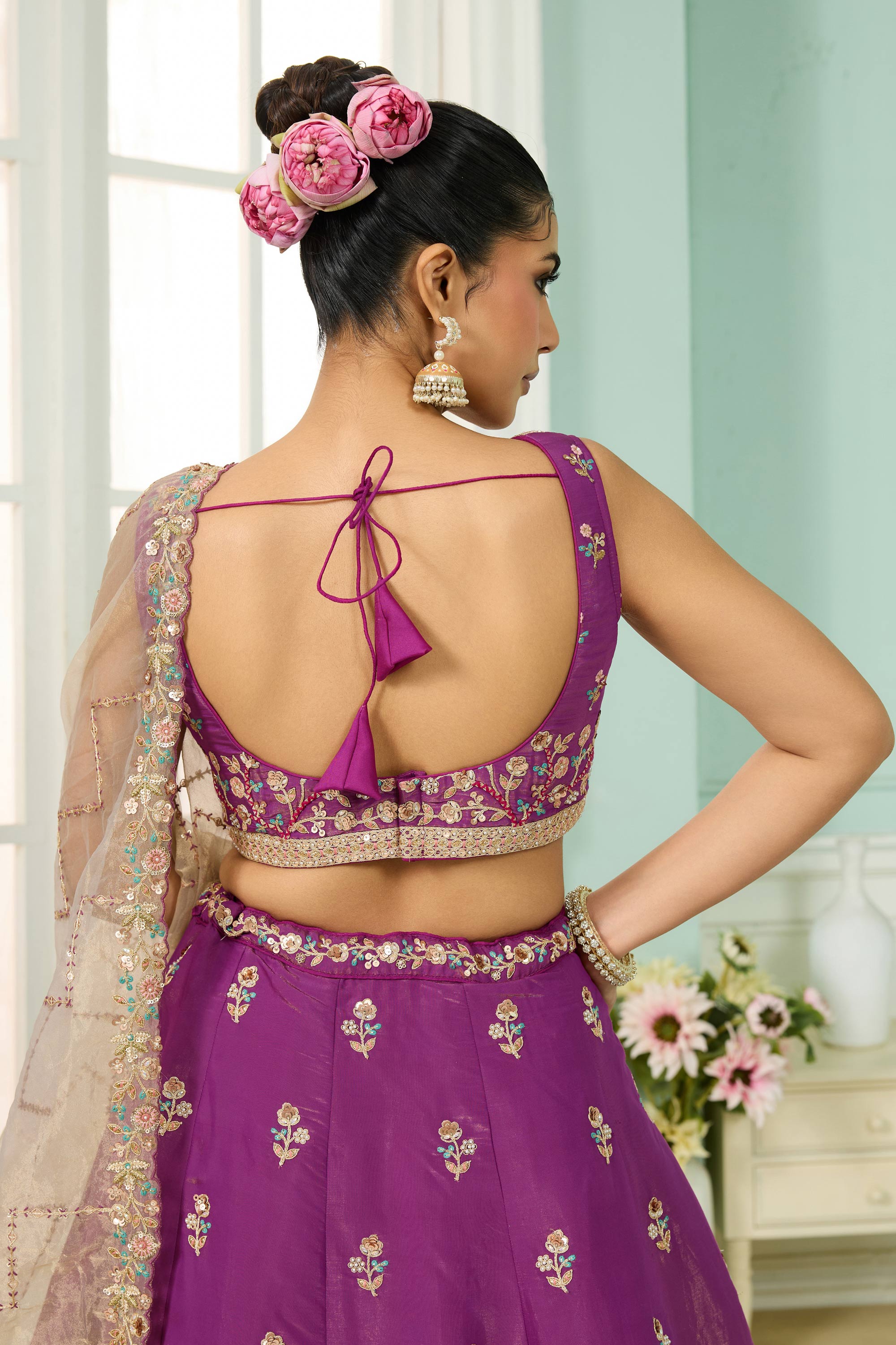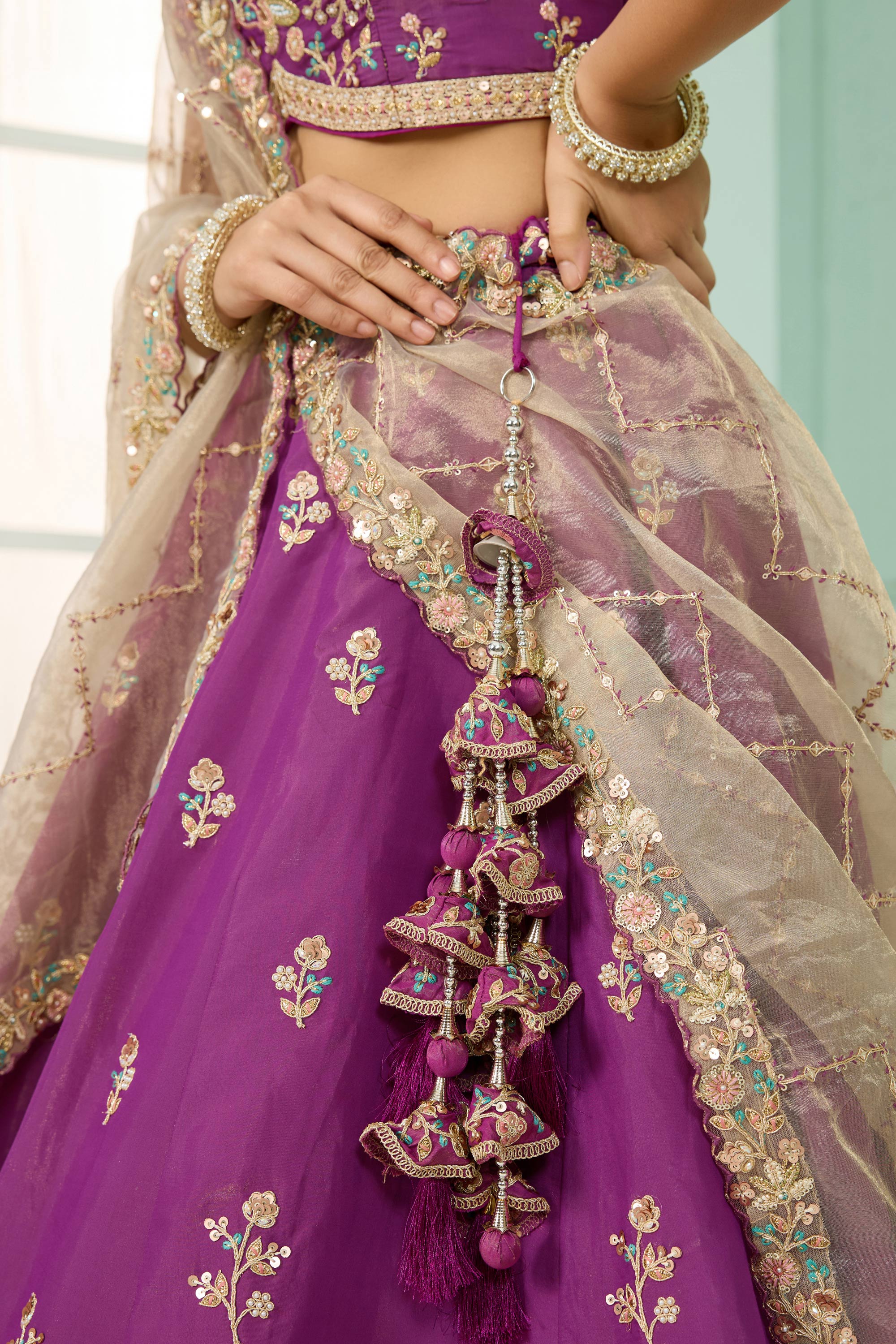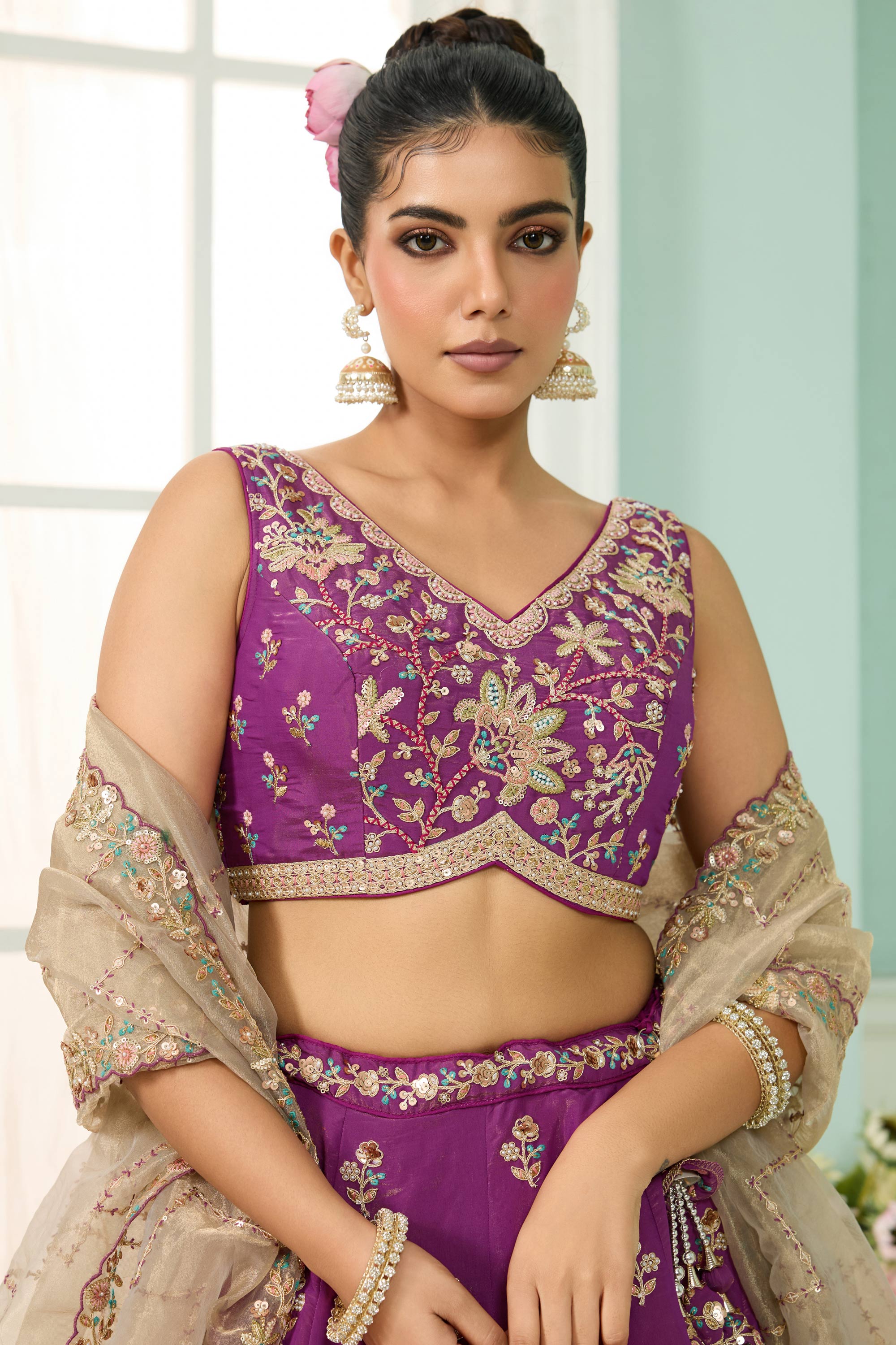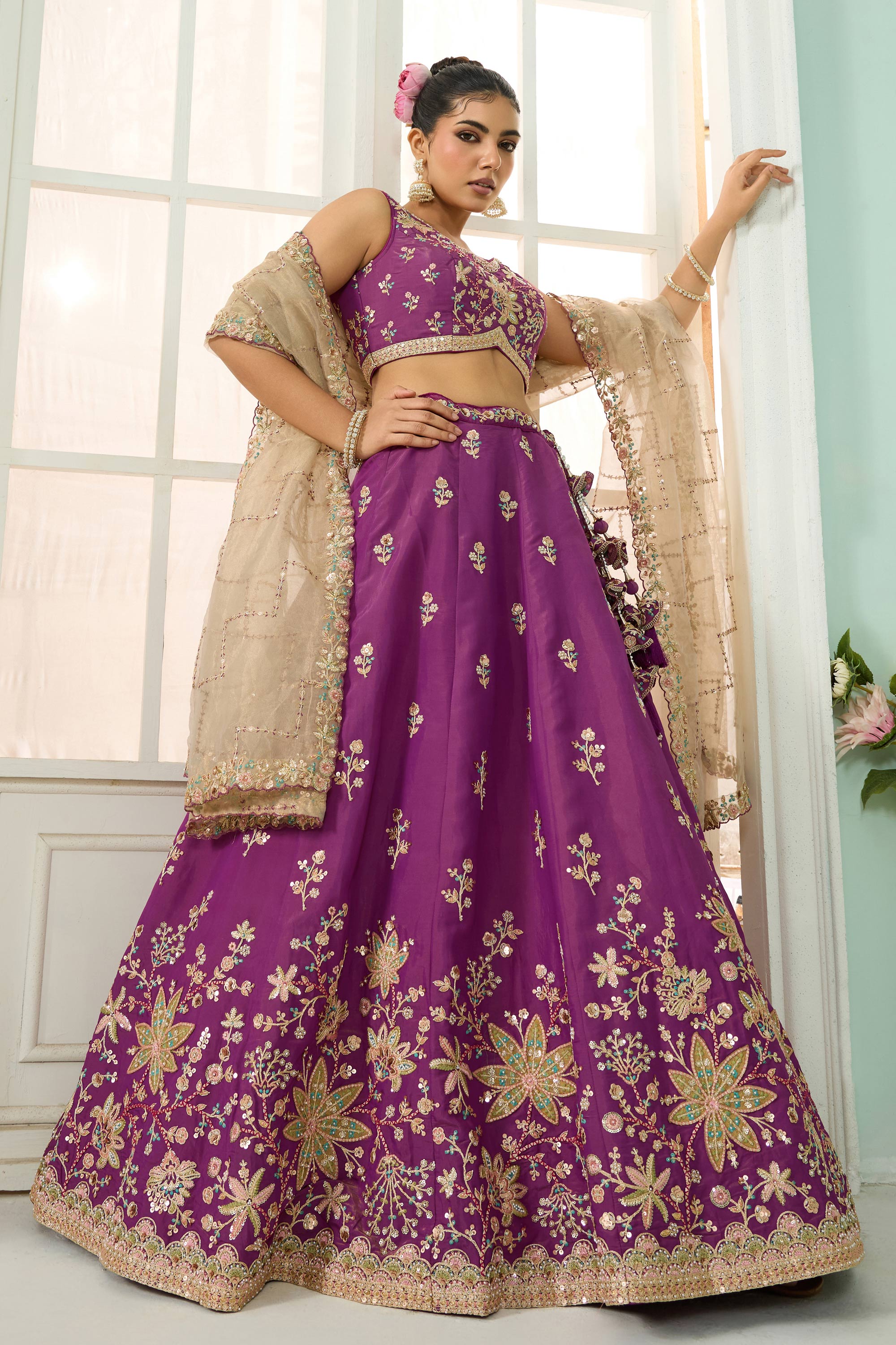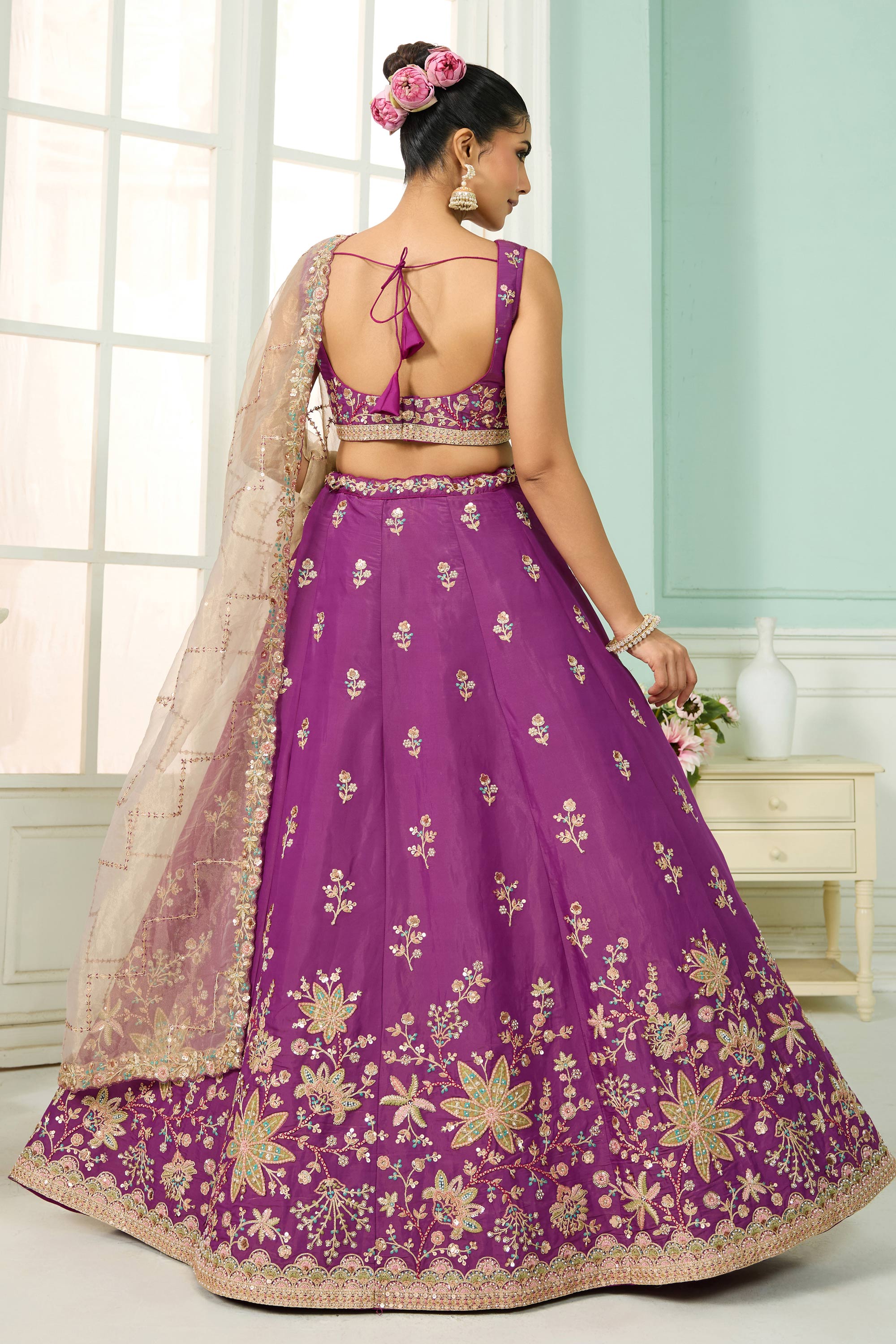 Georgette Embroidered Purple Wedding Wear Lehenga Choli With Dupatta