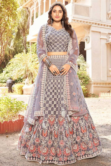 Grey Color Sangeet Wear Net Fabric Splendid Lehenga