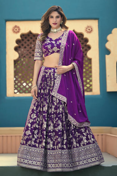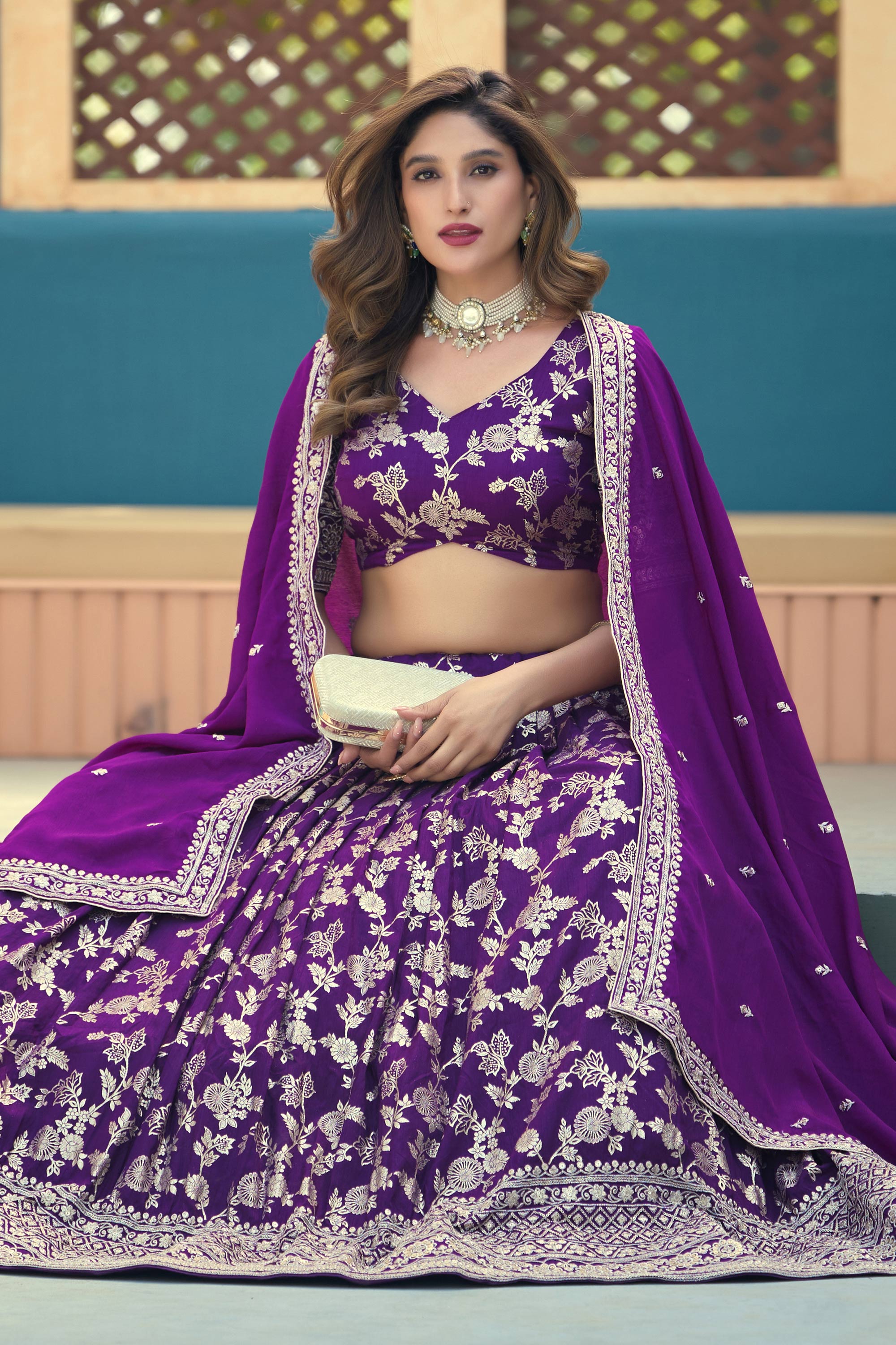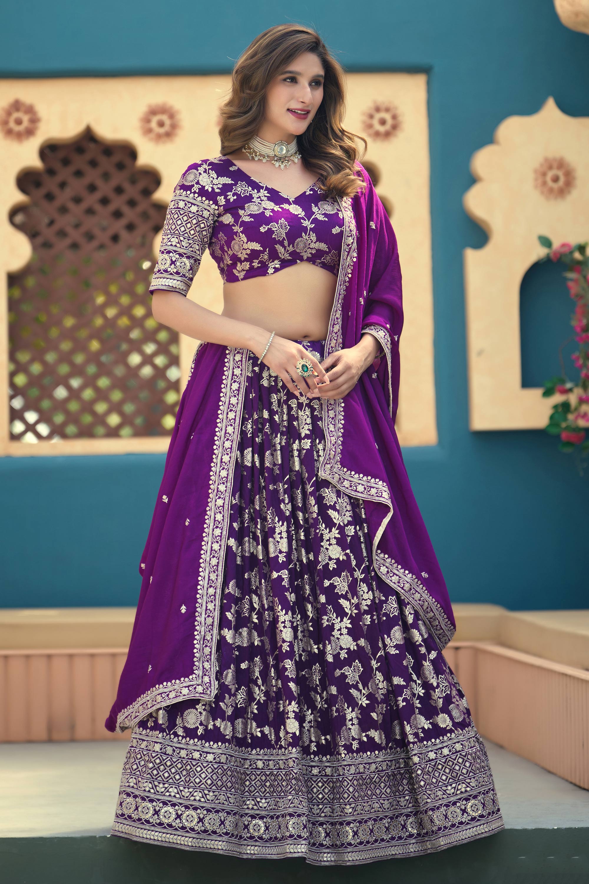 Jacquard Silk Weaving Work Purple Wedding Wear Lehenga Choli