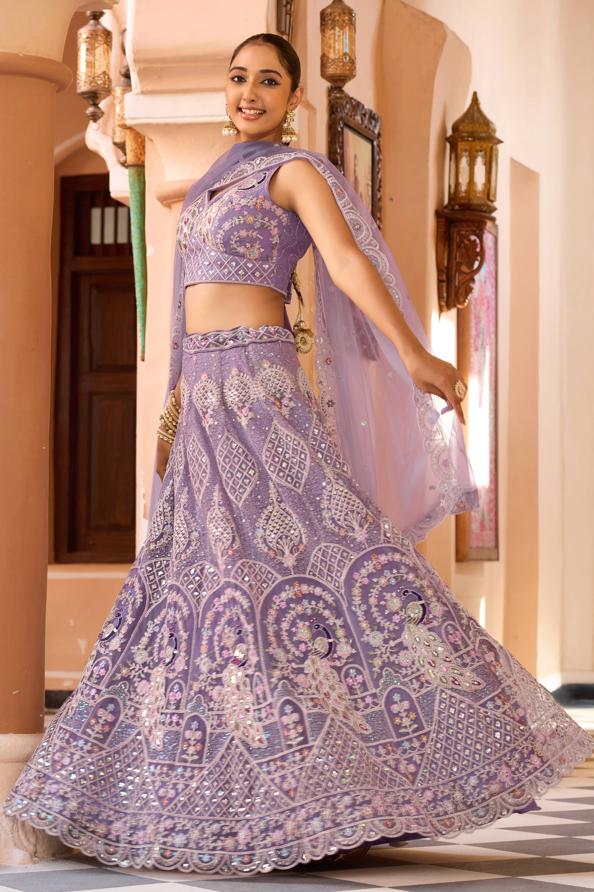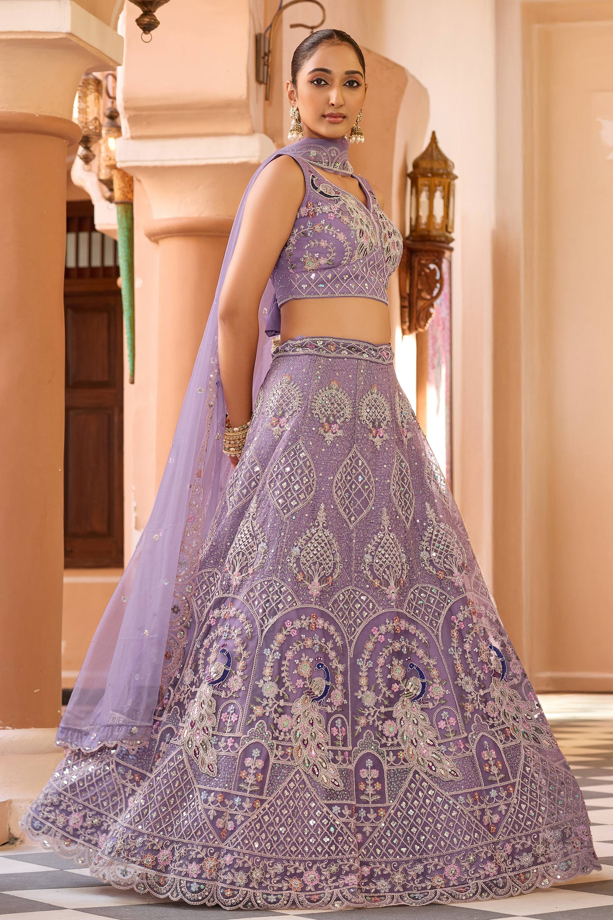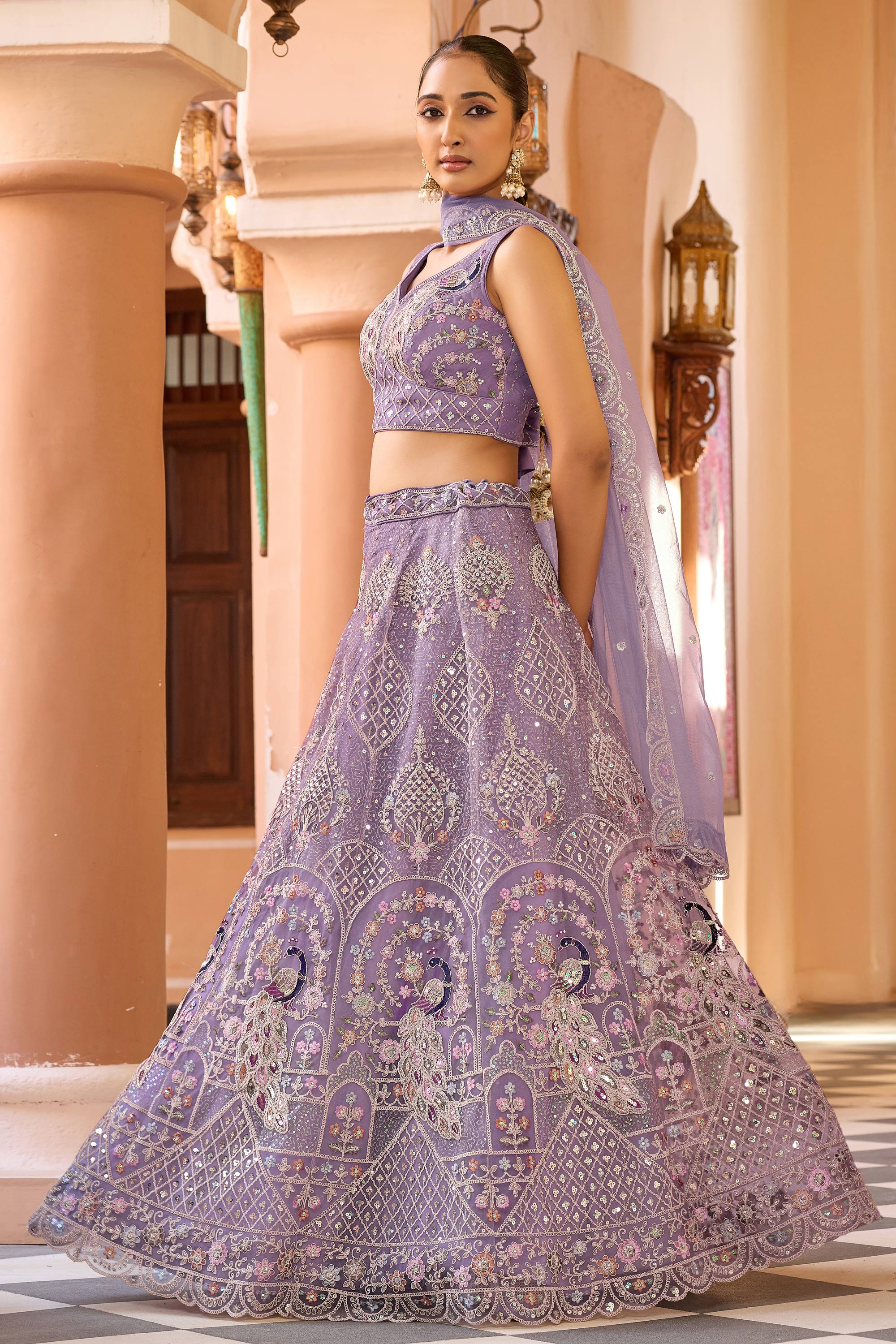 Lavender Wedding Wear Net Fabric Lehenga Choli With Dupatta