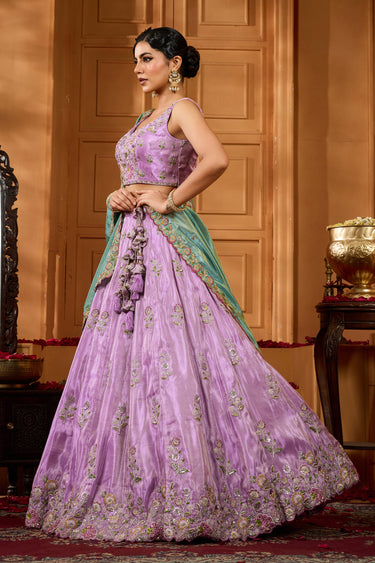 Lavender Wedding Wear Satin Silk Embroidered Lehenga Choli