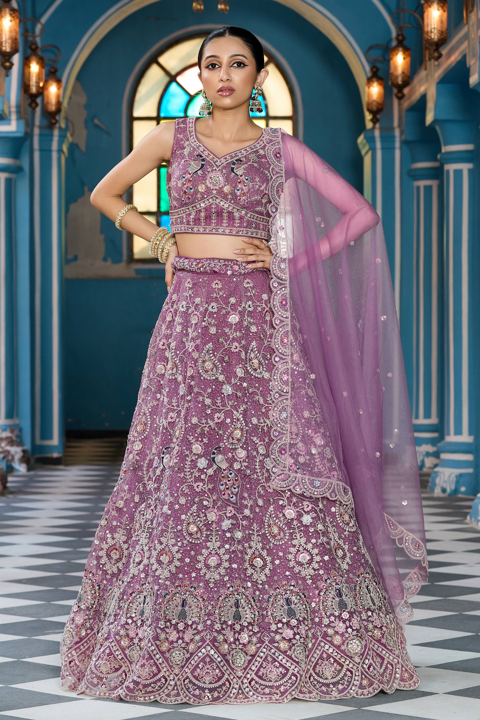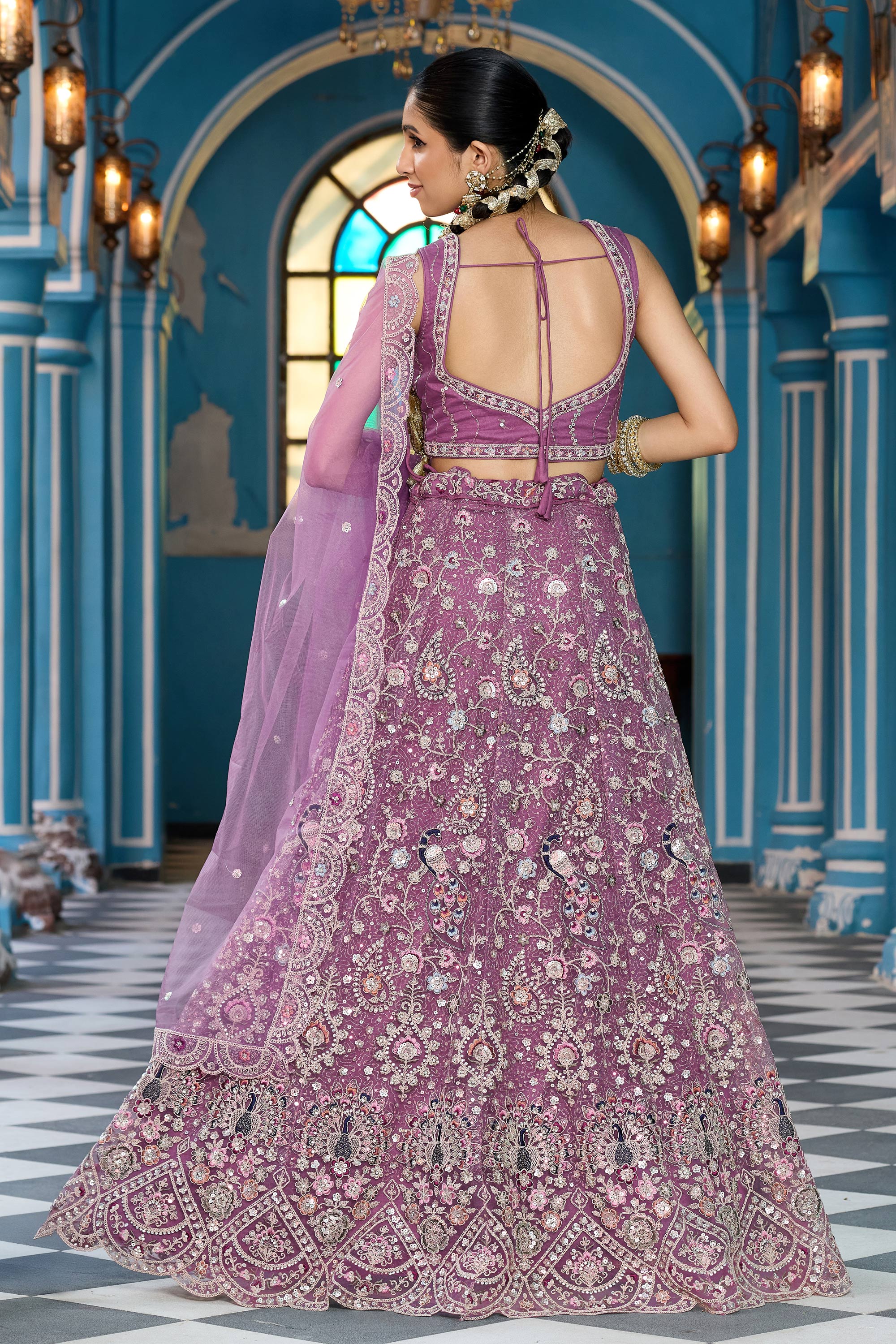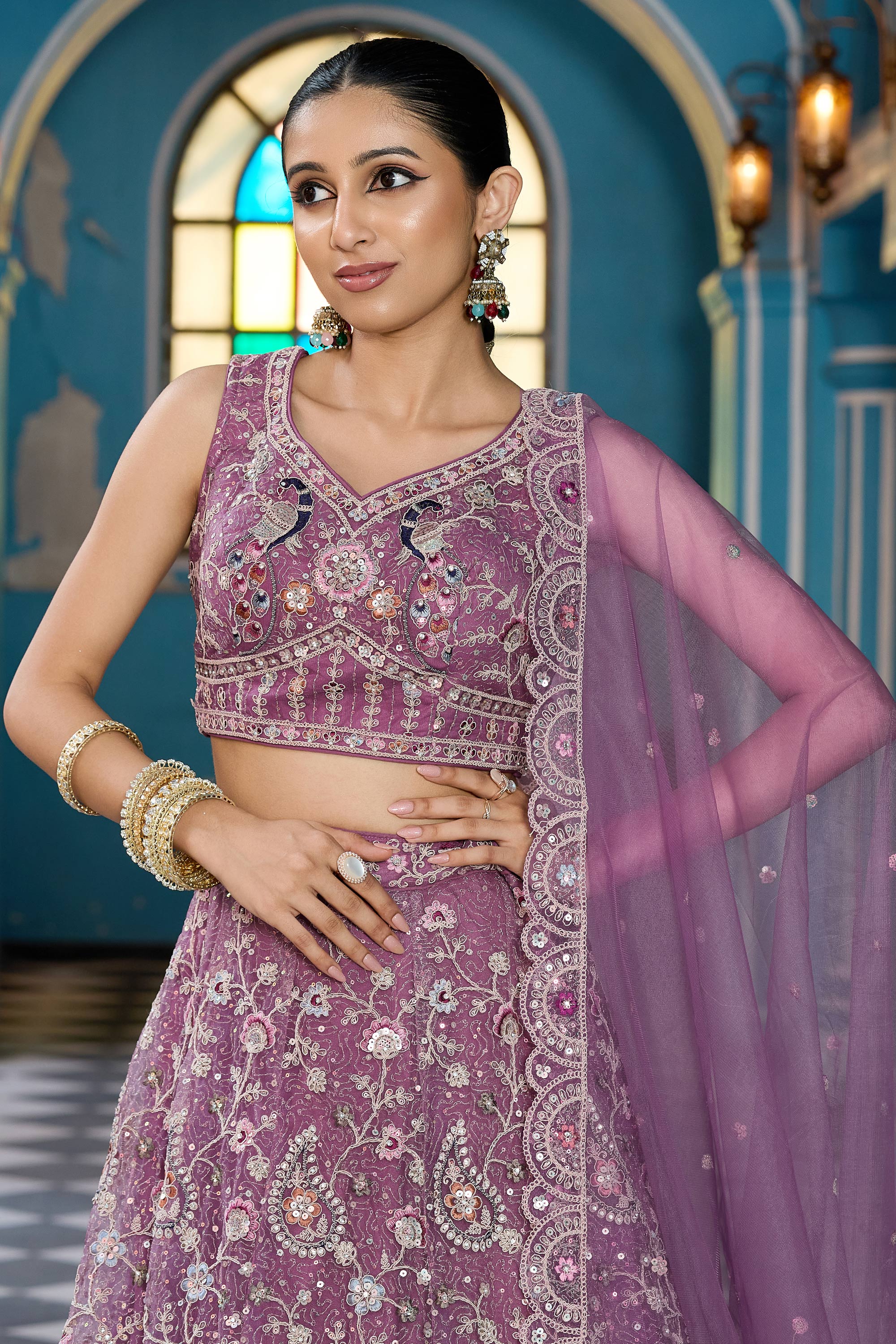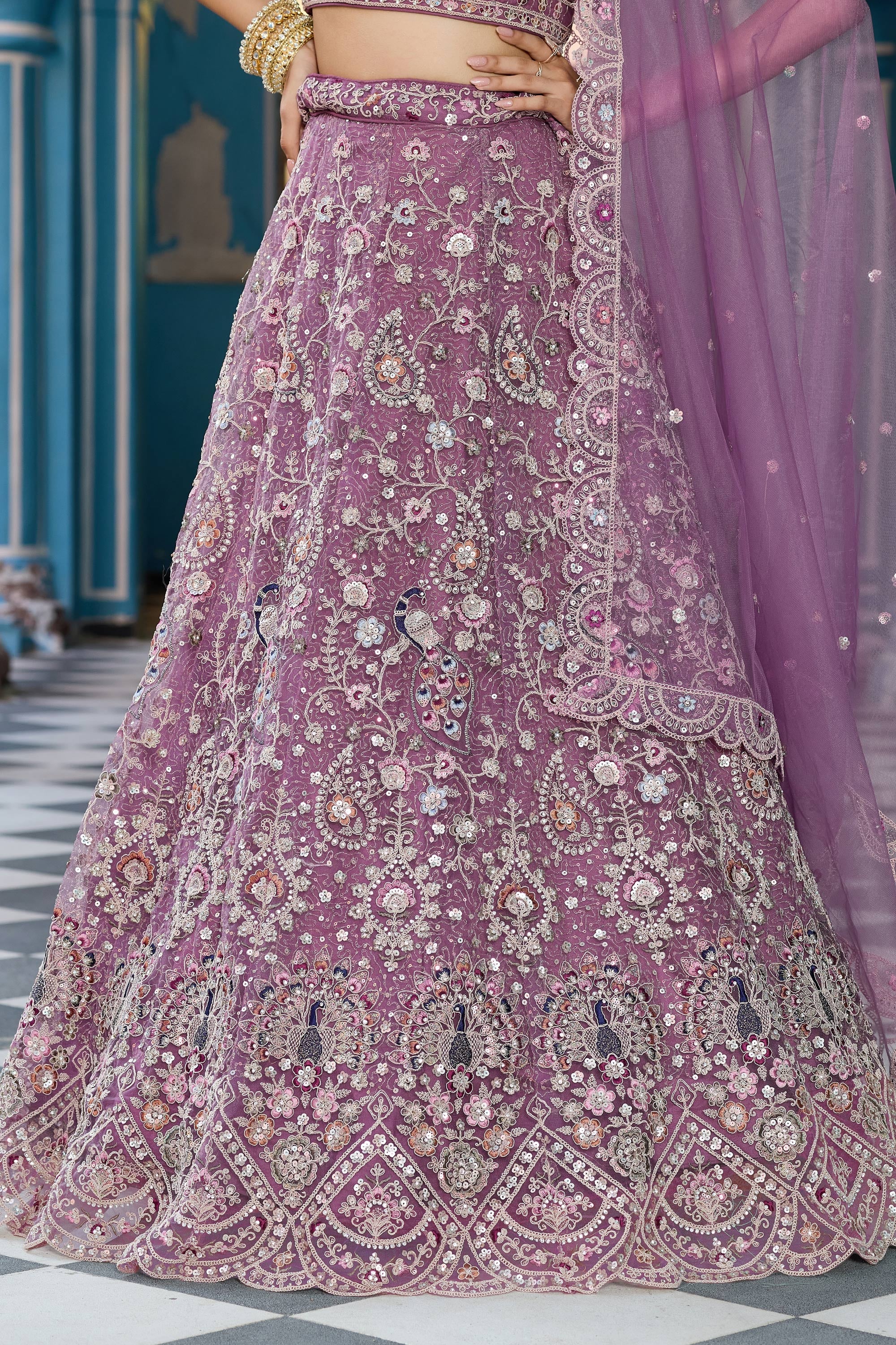 Net Fabric Embroidered Purple Lehenga Choli With Dupatta