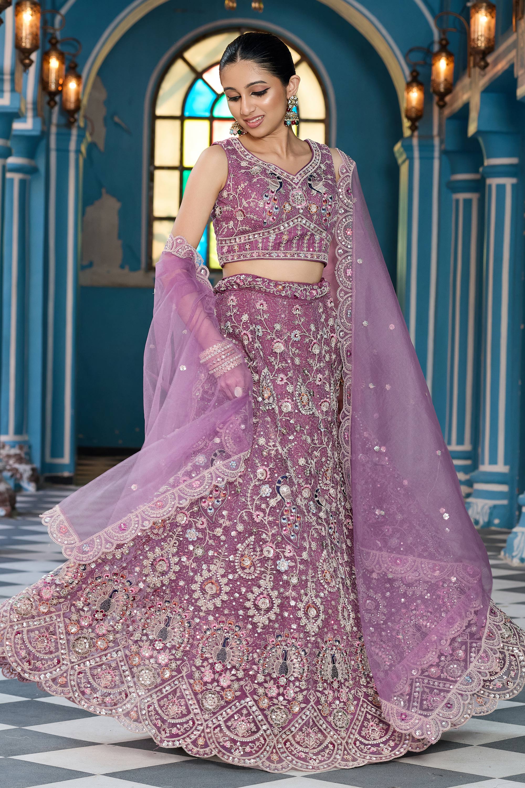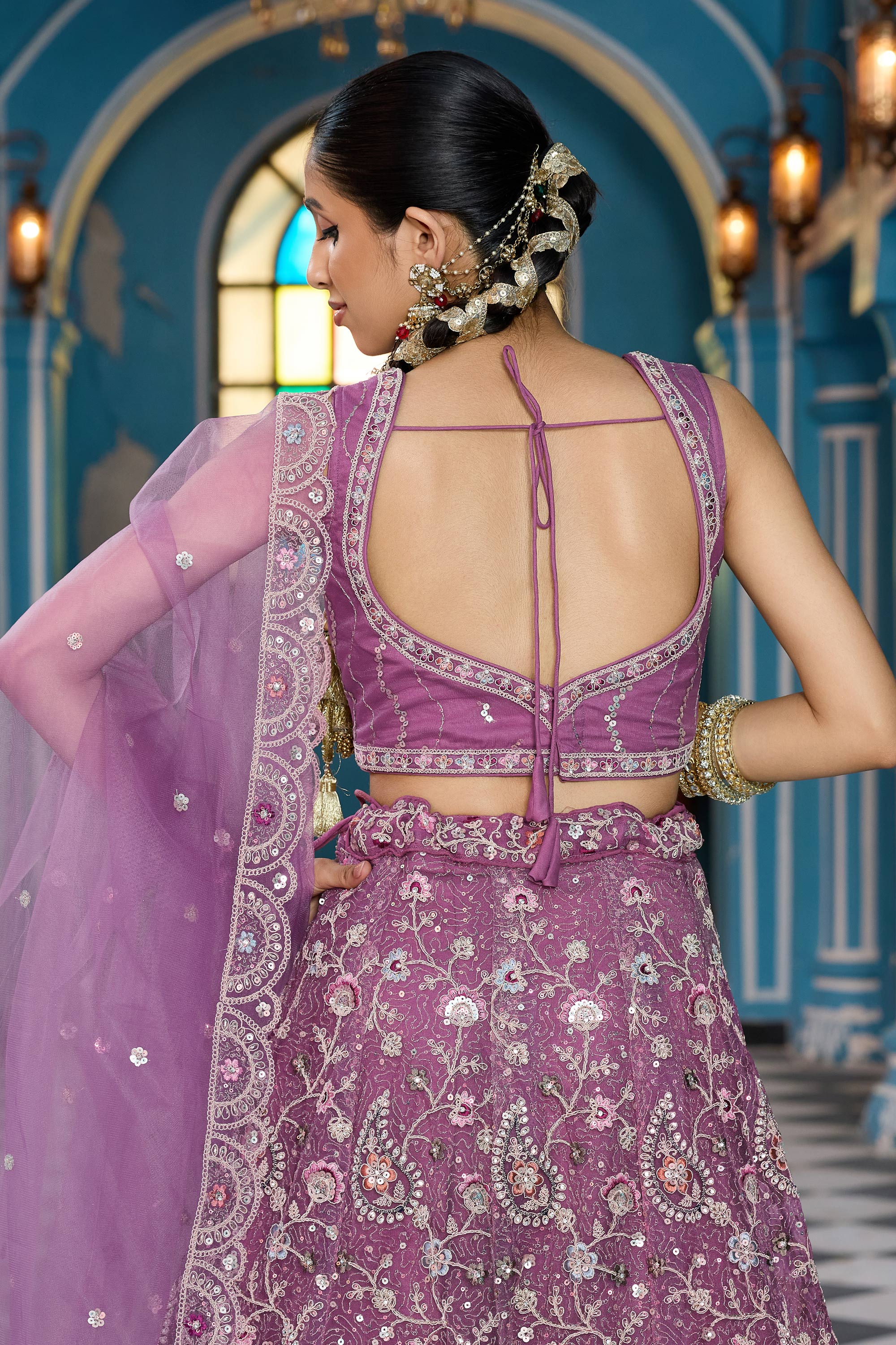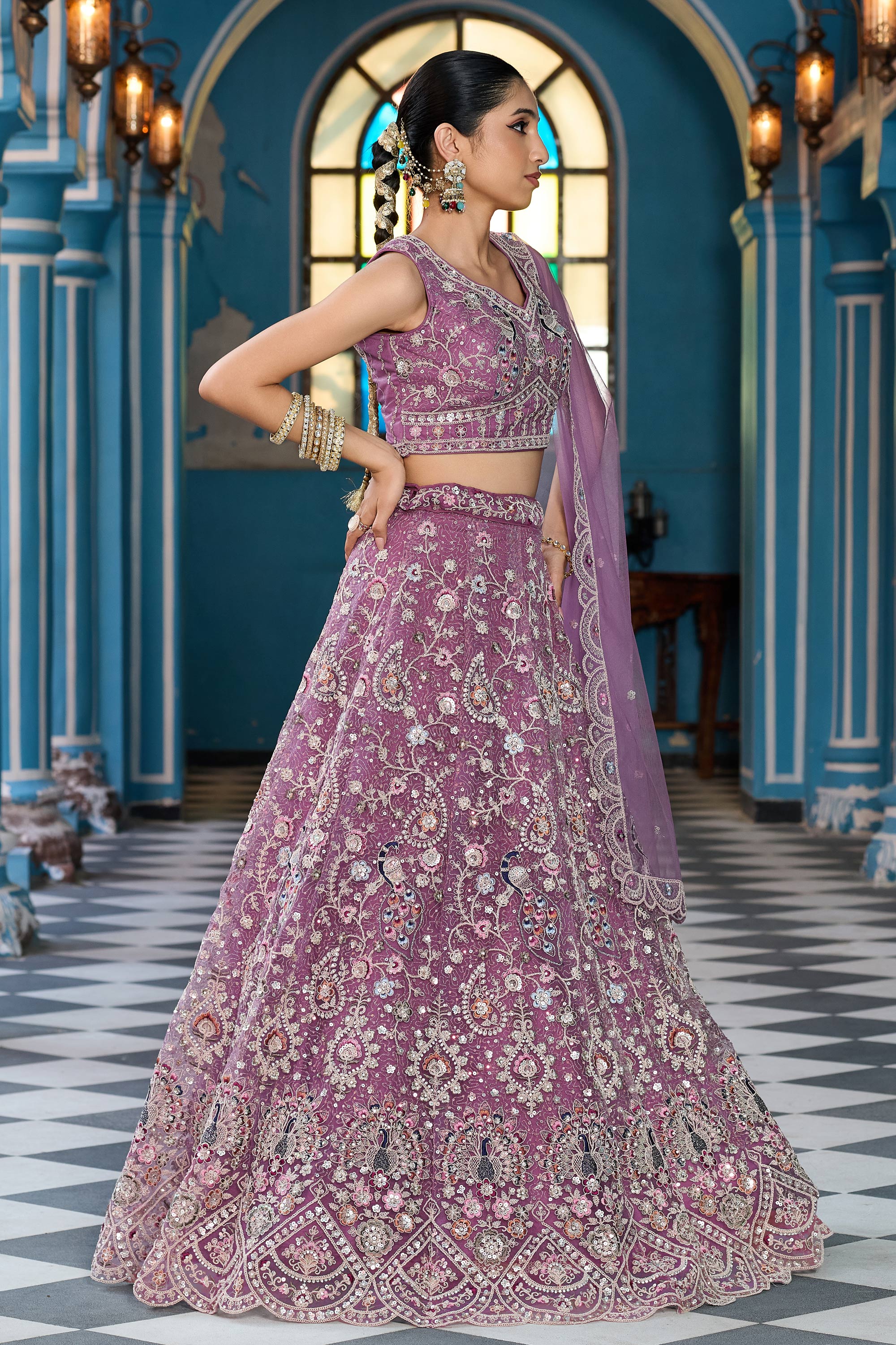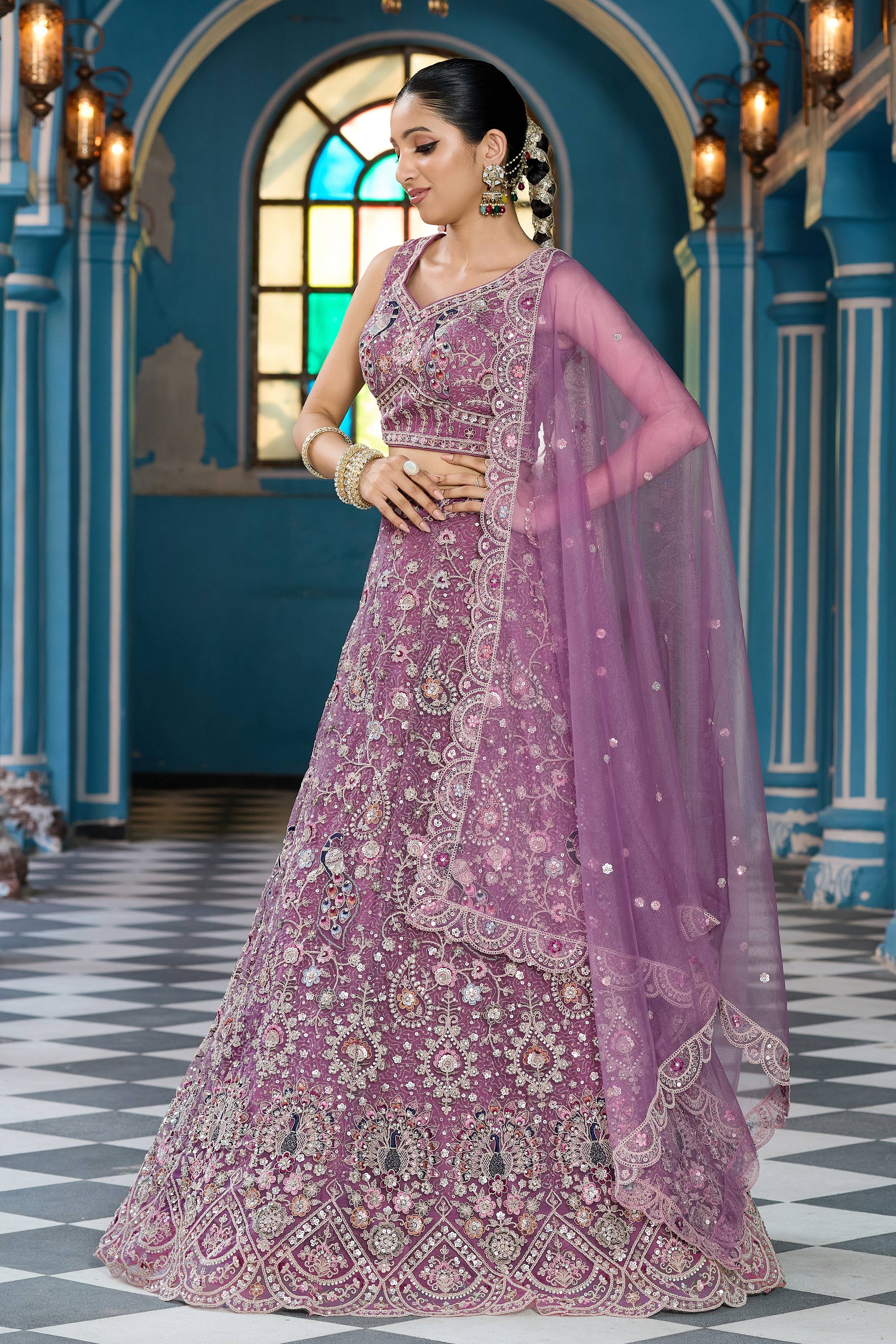 Net Fabric Embroidered Purple Lehenga Choli With Dupatta