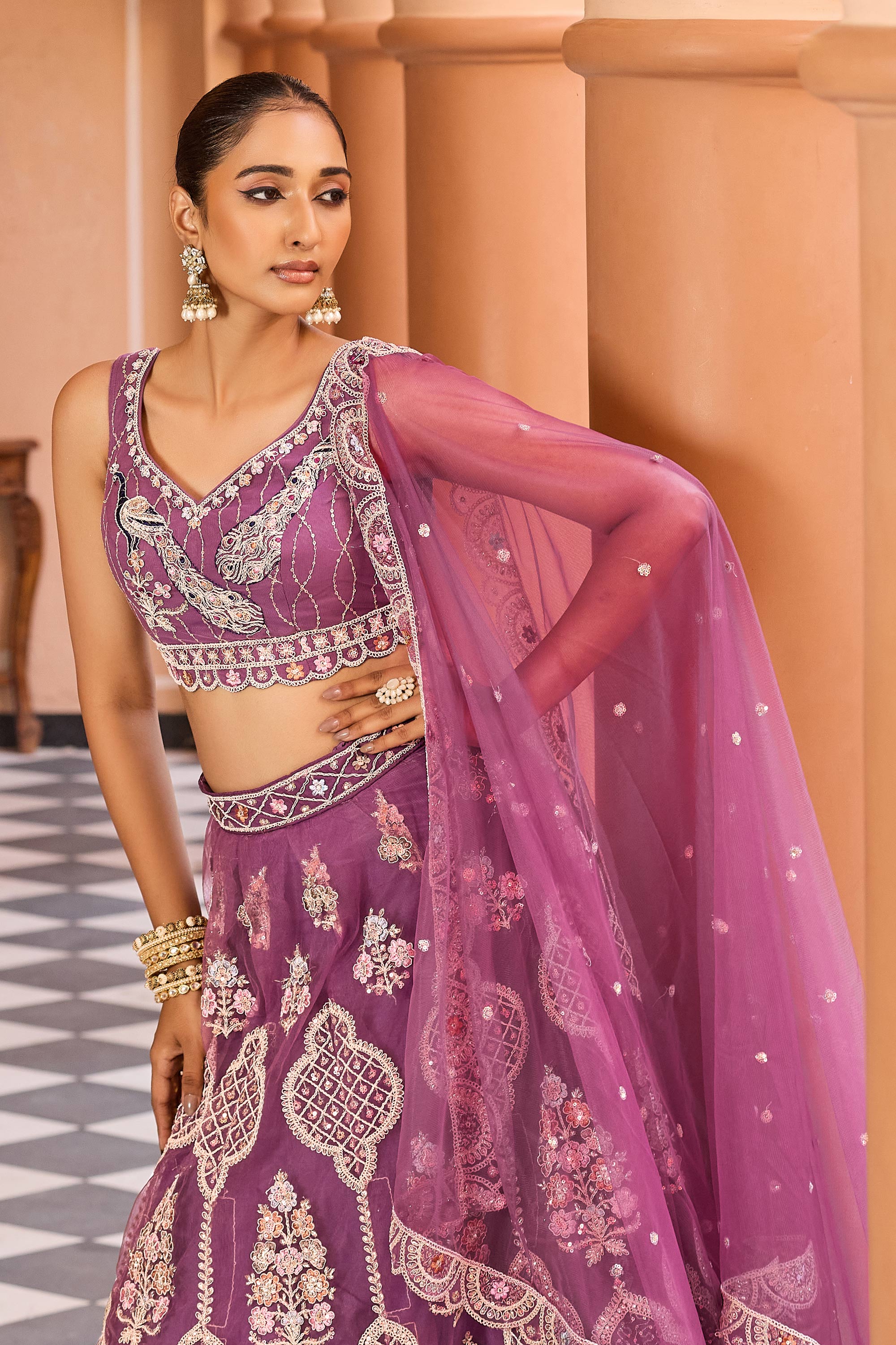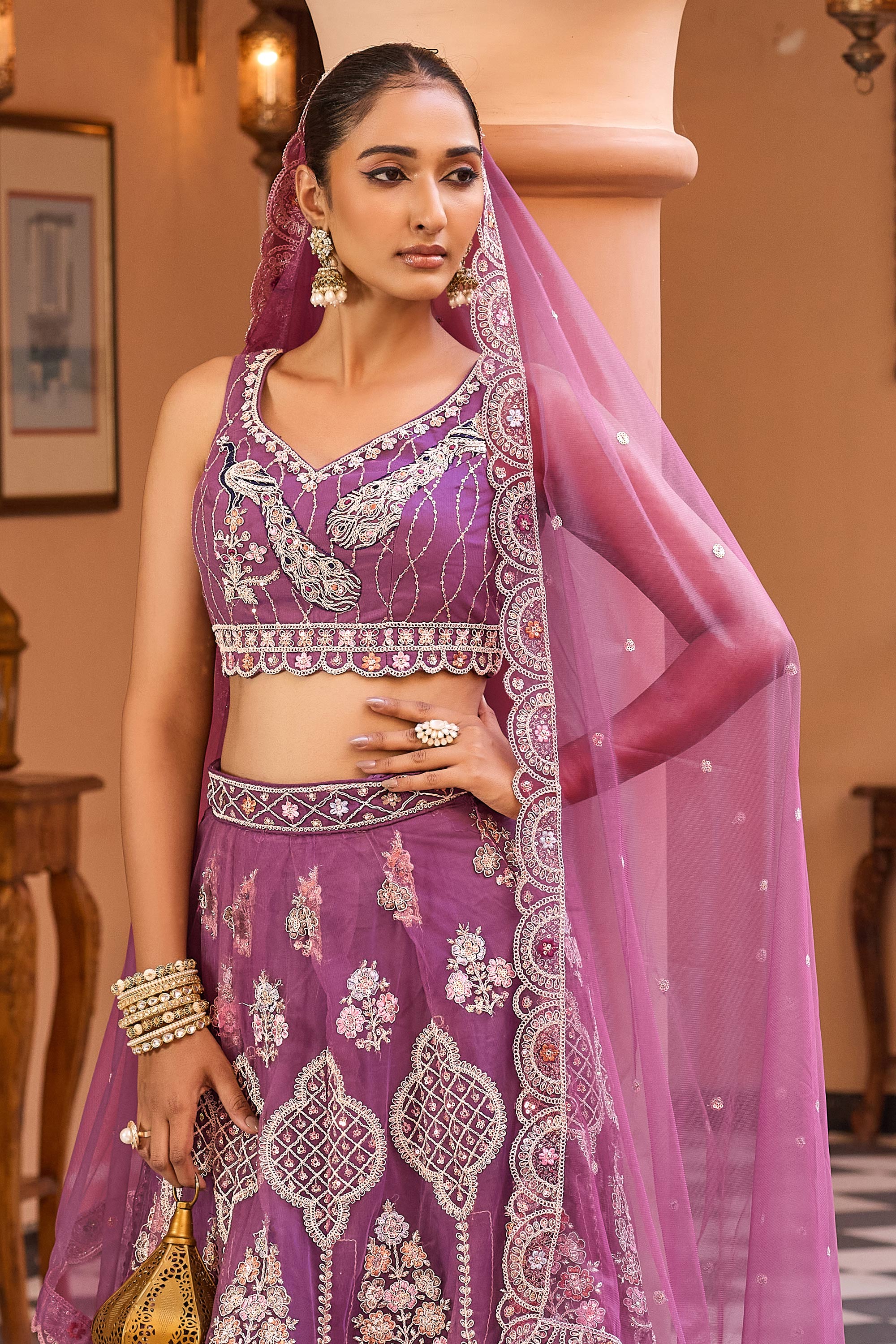 Net Fabric Lavender Lehenga Choli For Wedding Wear