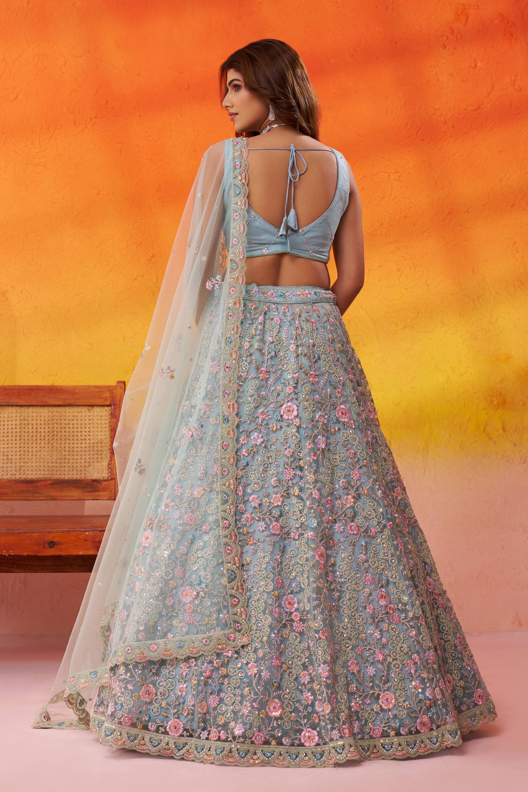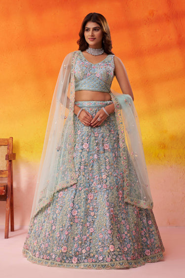 Net Fabric Sea Green Wedding Wear Lehenga Choli