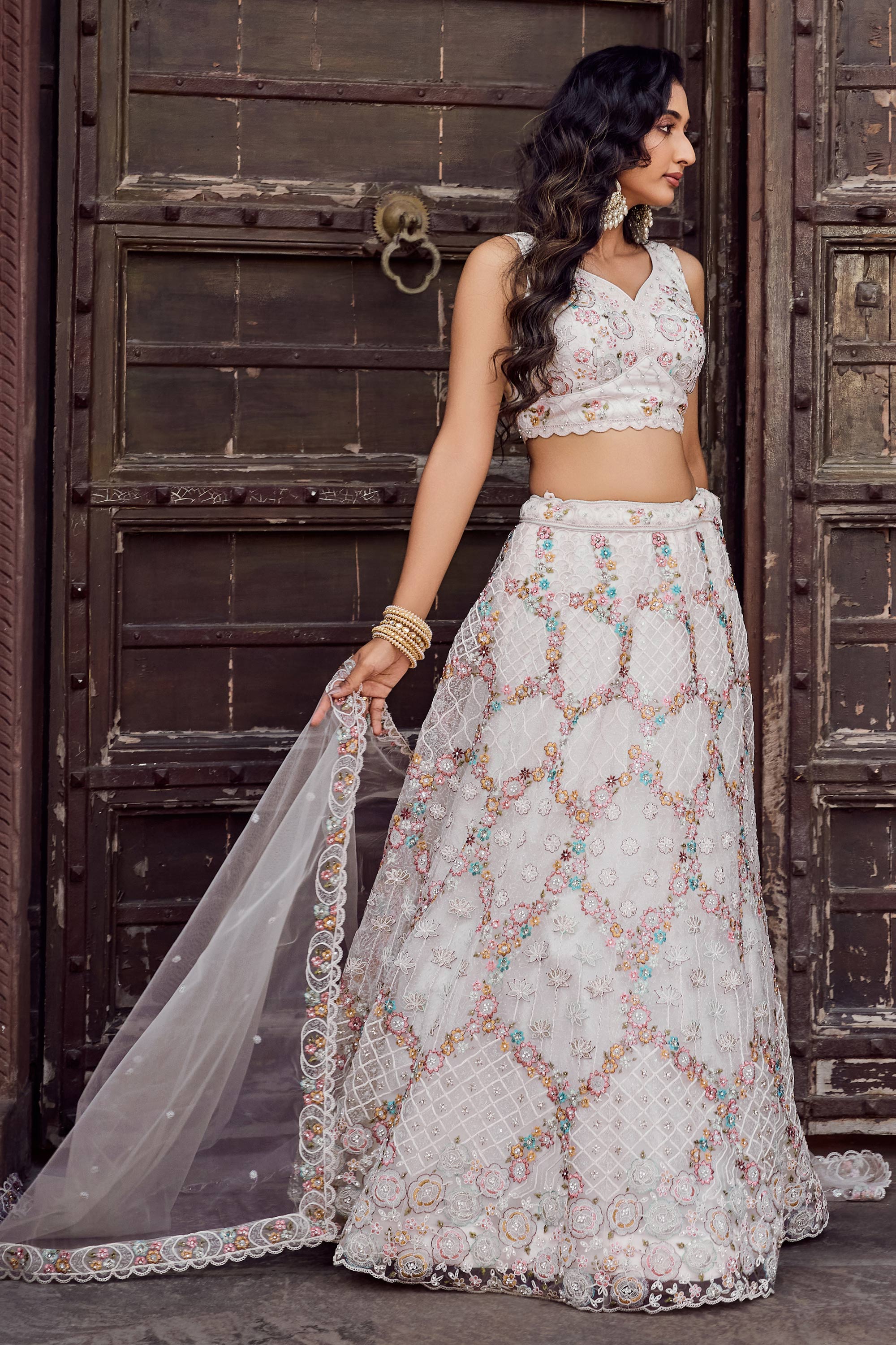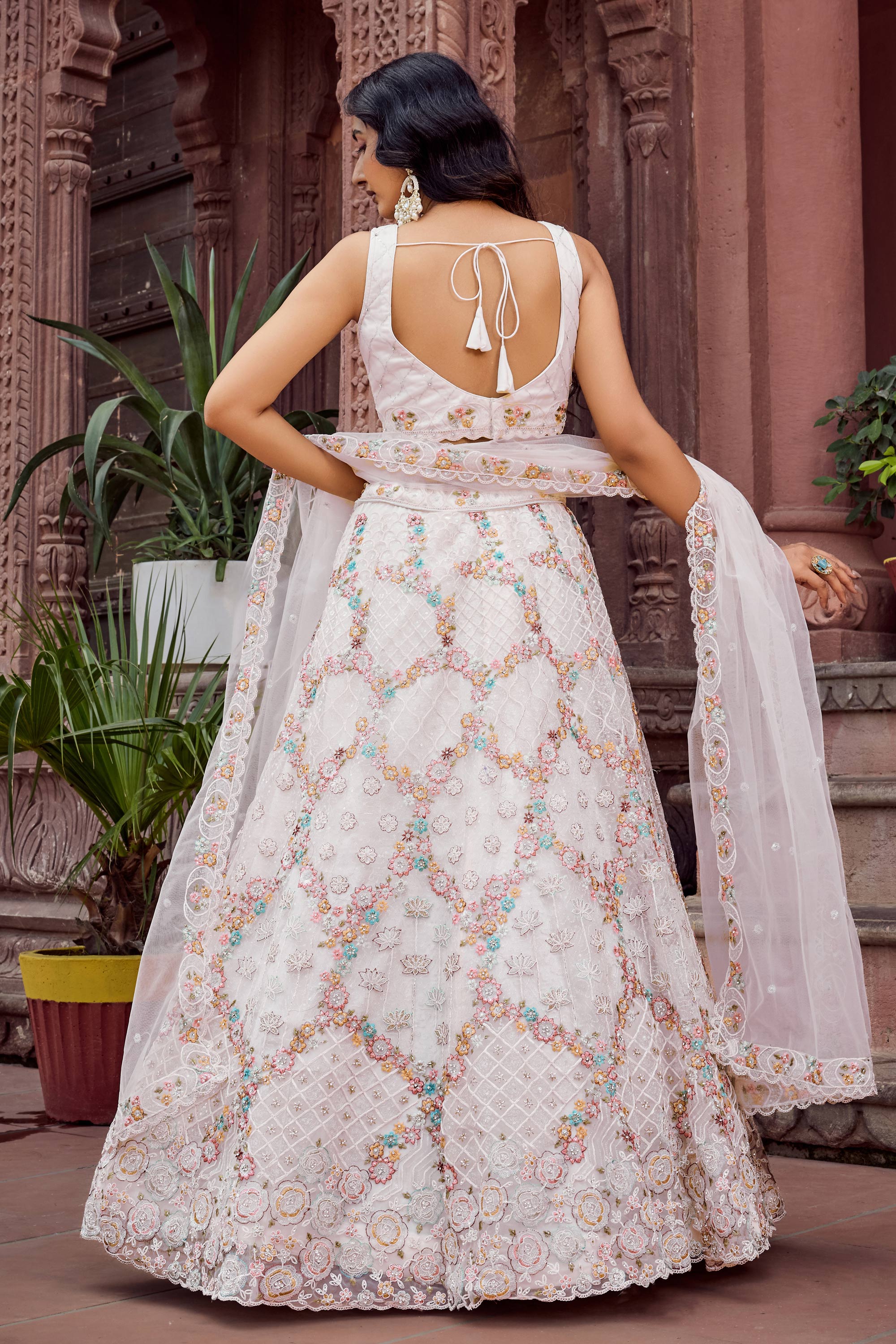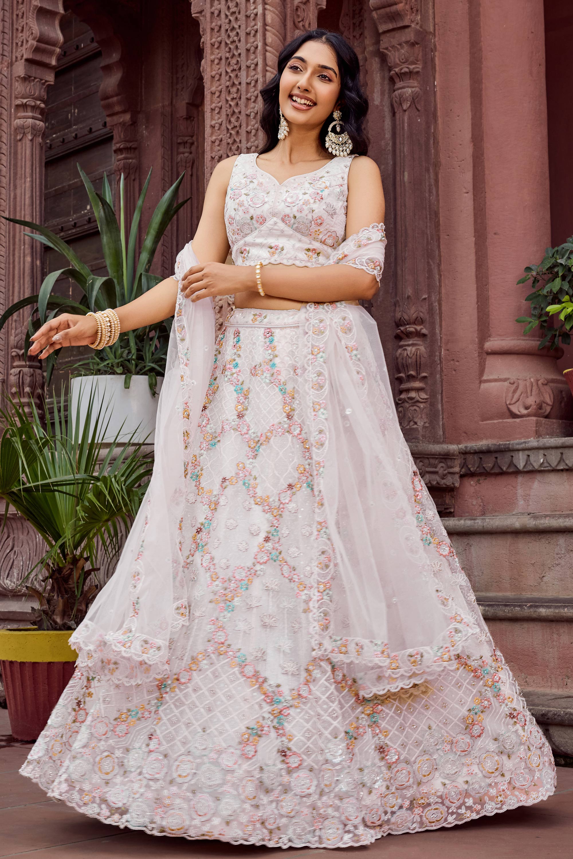 Off White Wedding Wear Embroidered Net Fabric Lehenga Choli