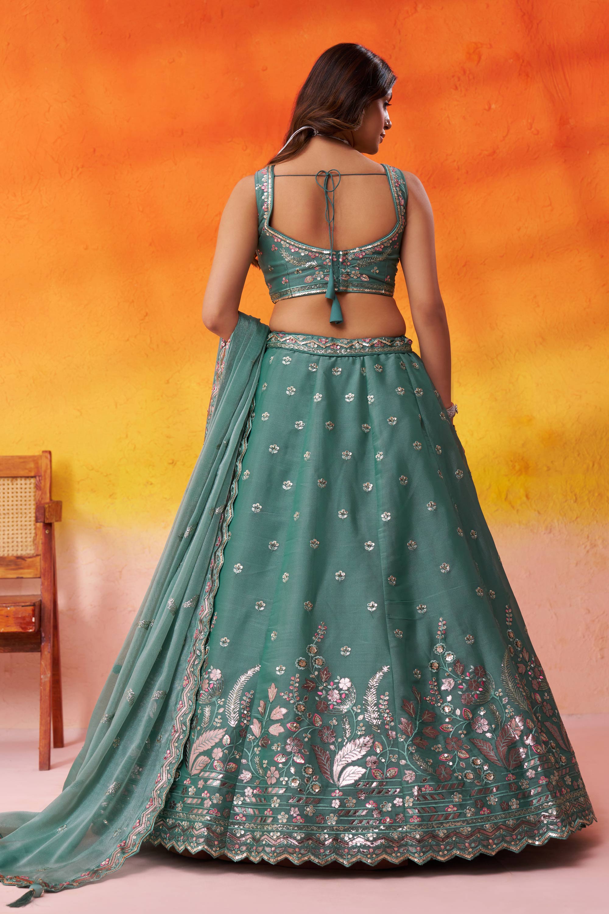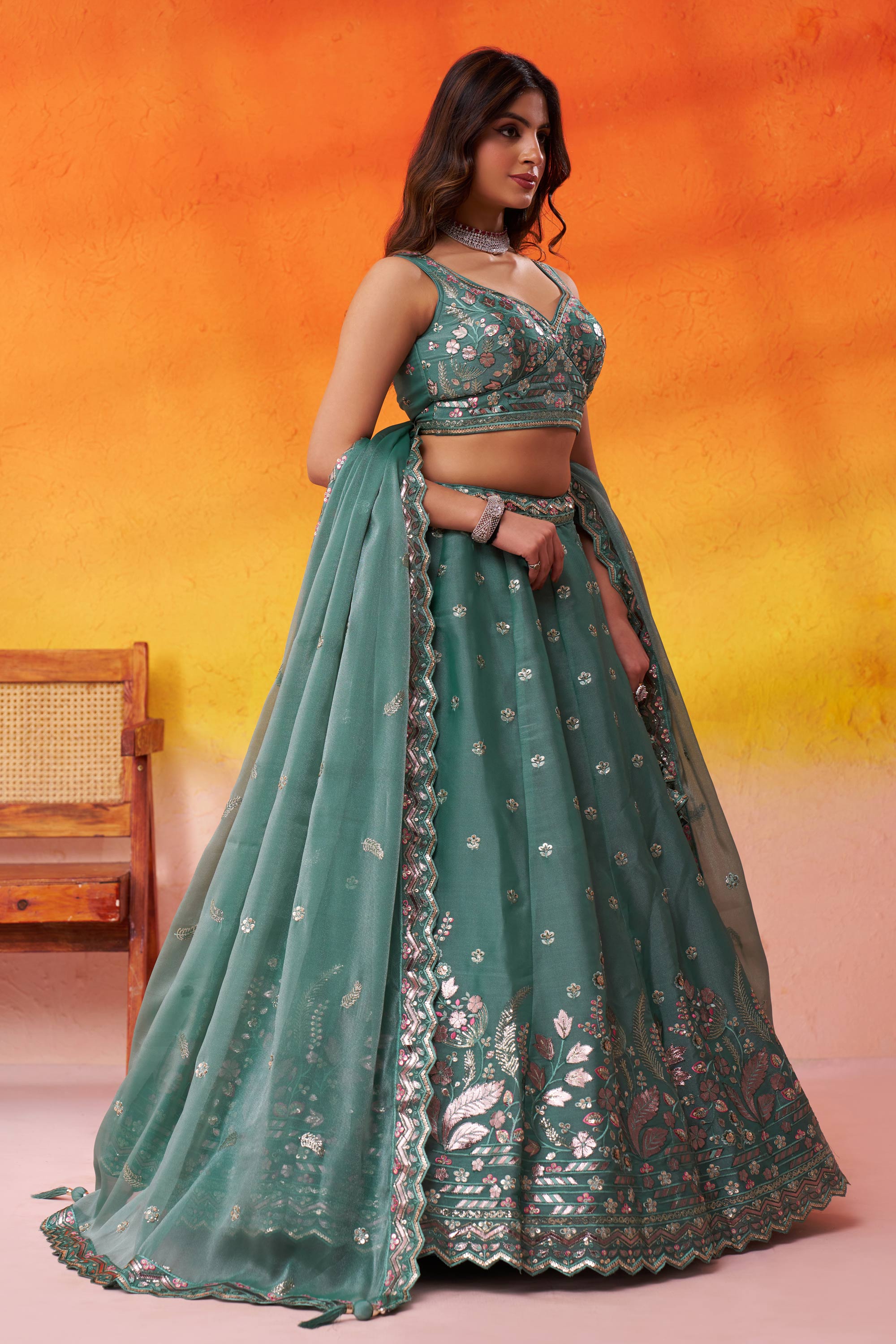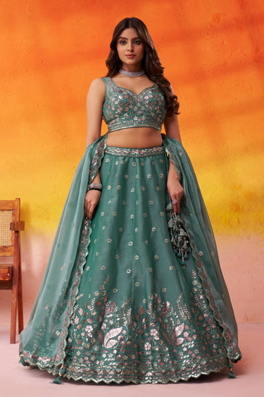 Organza Fabric Embroidered Teal Wedding Wear Lehenga Choli With Dupatta
