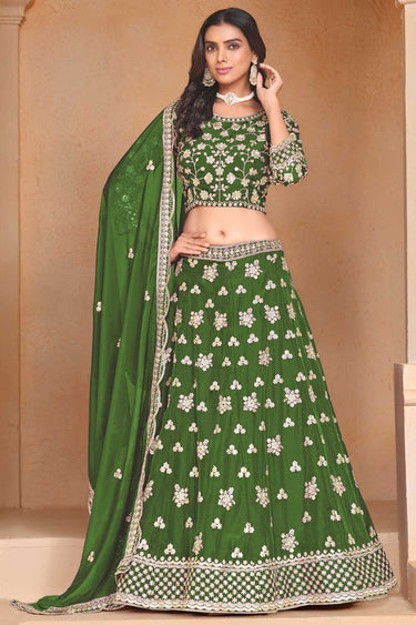Radiant Green Color Organza Fabric Lehenga