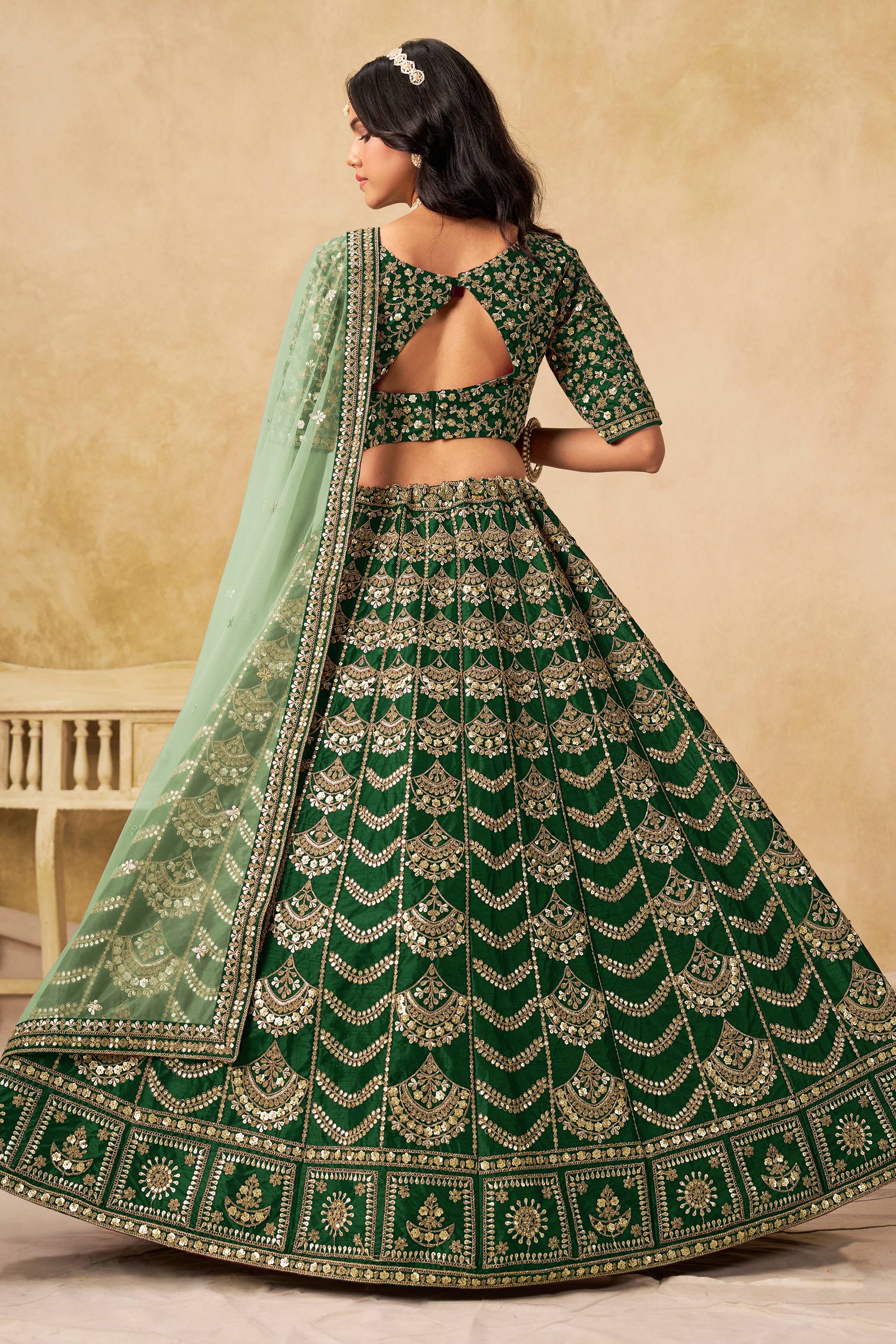 Sangeet Special Art Silk Lehenga Choli In Dark Green Color