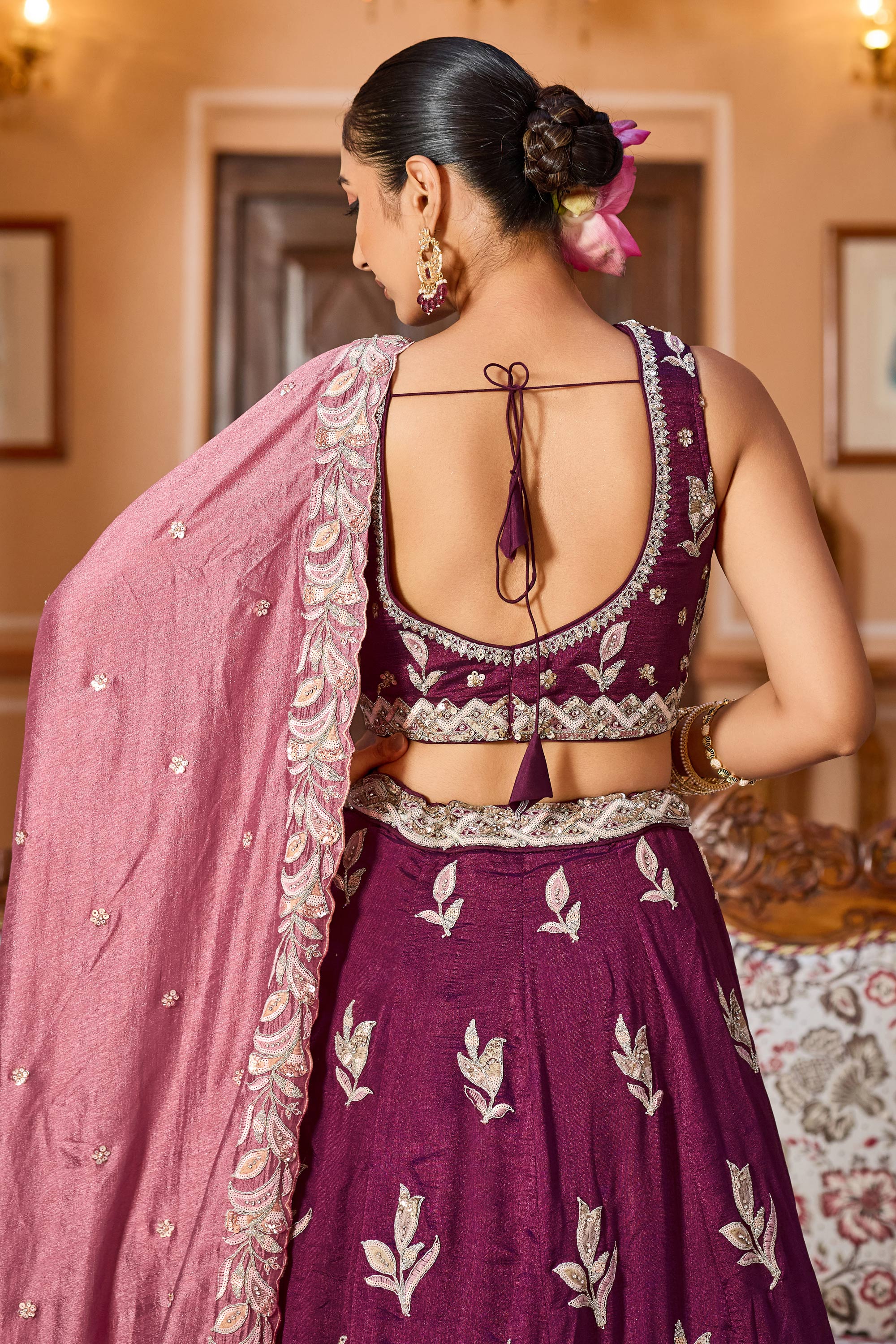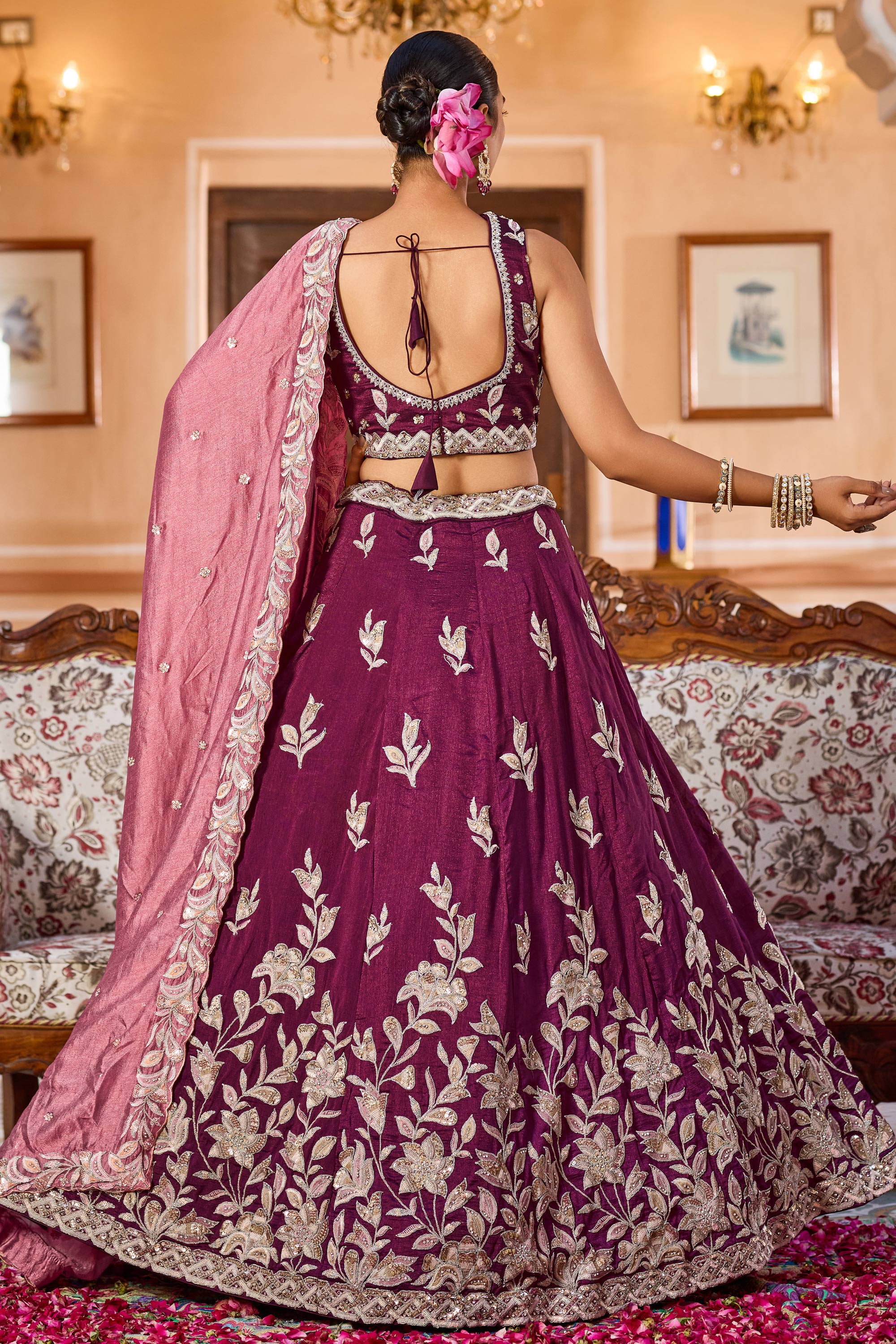 Silk Fabric Embroidered Burgundy Wedding Wear Lehenga Choli